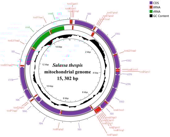 S. thespis adults were collected from Niba Mountain, Ya’an City, Sichuan Province, China, and stored in a refrigerator at −80 °C. Total genomic DNA was extracted by the Aidlab Genomic DNA Extraction Kit (Aidlab Co., Beijing, China). DNA quality was determined by 1% agarose gel electrophoresis, and the whole mitochondrial genome of S. thespis was amplified.