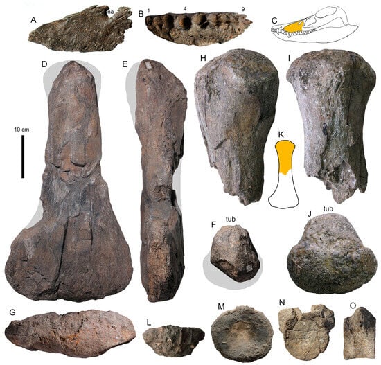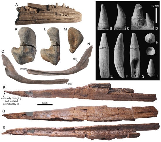- Madzia, D.; Szczygielski, T.; Wolniewicz, A.S. The giant pliosaurid that wasn’t-revising the marine reptiles from the Kimmeridgian, Upper Jurassic, of Krzyżanowice, Poland. Acta Palaeontol. Pol. 2021, 66, 99–129. [Google Scholar] [CrossRef]
