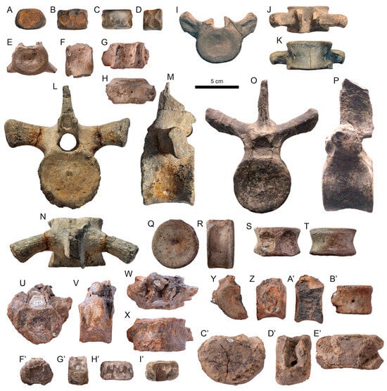 - Beznosov, P.A.; Zverkov, N.G. Fossil vertebrates in the Jurassic of the Ukhta area. In Jurassic deposits of the Ukhta area (Komi Republic); Rogov, M.A., Ed.; Institute of Geology Komi SC UB RAS: Syktyvkar, Russia, 2023; pp. 88–93. [Google Scholar]