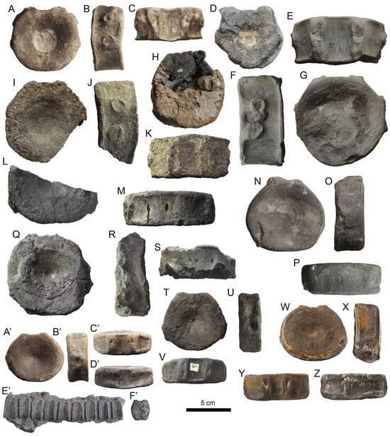 - Beznosov, P.A.; Zverkov, N.G. Vertebrate remains from the Jurassic deposits of the Sysola River basin. In Jurassic Deposits of the Sysola River Basin in the Vicinities of Syktyvkar (Komi Republic). Guidebook of the Field Geological Excursion of the IX All-Russian Meeting “Jurassic System of Russia: Problems of Stratigraphy and Paleogeography”; Institute of Geology Komi SC UB RAS: Syktyvkar, Russia, 2023; p. 29. (In Russian) [Google Scholar]