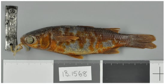 - Fricke, R.; Eschmeyer, W.N.; Van der Laan, R. Eschmeyer’s Catalog of Fishes: Genera, Species, References. Available online: http://researcharchive.calacademy.org/research/ichthyology/catalog/fishcatmain.asp (accessed on 5 October 2023).