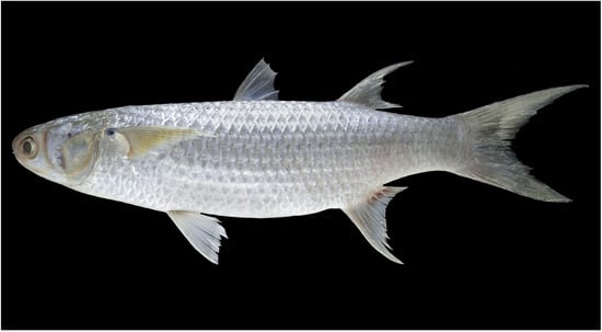 - Schultz, L.P. A revision of the genera of mullets, fishes of the family Mugilidae, with descriptions of three new genera. In Proceedings of the United States National Museum; Smithsonian Institution Press: Washington, DC, USA, 1946; Volume 96, pp. 377–395. [Google Scholar]