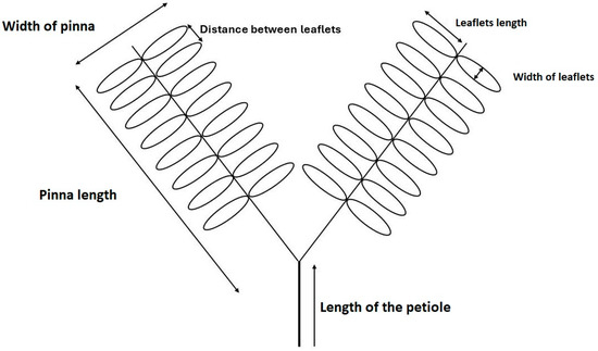 Schematic representation of the mesquite leaf, for taking measurements [25].