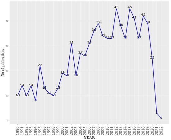 A comprehensive analysis was conducted on a total of 815 publications from 1990 to 2023. The trend in publications indicates a notable increase in the number of published papers over the last decade (Figure 3).