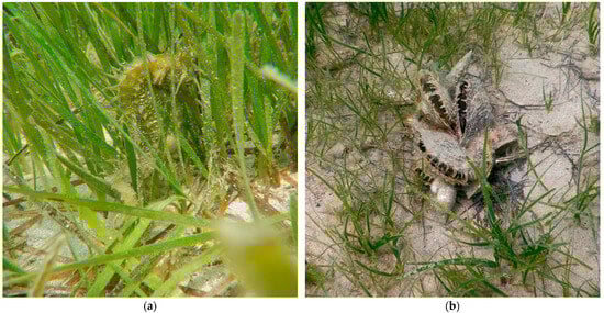 - Pierri, C.; Cardone, F.; Corriero, G.; Lazic, T.; Quattrocchi, F.; Alabiso, G.; Gristina, M. Density decline in a Mediterranean seahorse population: Natural fluctuations or new emerging threats? Front. Mar. Sci. 2021, 8, 692068. [Google Scholar] [CrossRef]