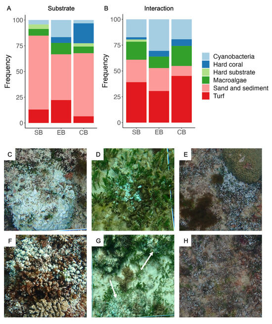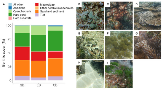- Reverter, M.; Helber, S.B.; Rohde, S.; de Goeij, J.M.; Schupp, P.J. Coral Reef Benthic Community Changes in the Anthropocene: Biogeographic Heterogeneity, Overlooked Configurations, and Methodology. Glob. Chang. Biol. 2022, 28, 1956–1971. [Google Scholar] [CrossRef]