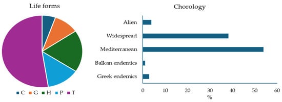In the framework of the authors’ research, a database has been created including the plant taxa, their distribution in the studied area, their biological and chorological types and their habitat preferences according to the data provided by the “Vascular Plants of Greece” [40,41].
