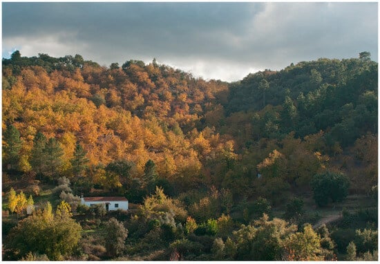 - García, L.; García, L.F. Aportaciones al estudio climático de la Sierra de Huelva. In IV Jornadas del Patrimonio de la Sierra de Huelva; Diputación Provincial, Ayuntamiento de Jabugo, Consejería de Cultura y Medio Ambiente, Eds.; Diputación Provincial: Huelva, Spain, 1992; pp. 45–54. [Google Scholar]