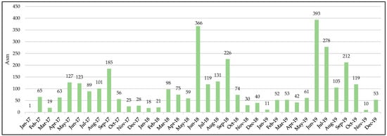 Monthly abundance (Asm, number of individuals/sample) during the 2017–2019 period.