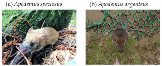 Wood mice, (a) Apodemus speciosus and (b) Apodemus argenteus.