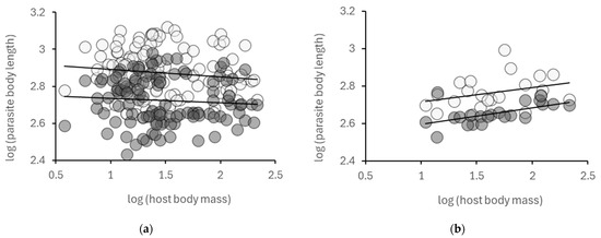 - Morand, S.; Legendre, P.; Gardner, S.L.; Hugot, J.P. Body size evolution of oxyurid (Nematoda) parasites: The role of hosts. Oecologia 1996, 107, 274–282. [Google Scholar] [CrossRef]