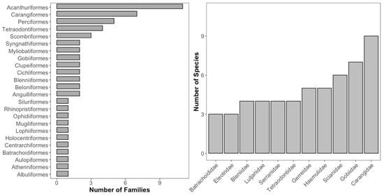 | Number of Species | Actinopteri | Elasmobranchii | Reference |