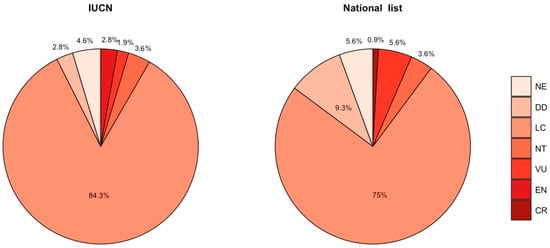- IUCN. The IUCN Red List of Threatened Species. 2024. Version 2024-1. Available online: https://www.iucnredlist.org (accessed on 16 July 2024).
