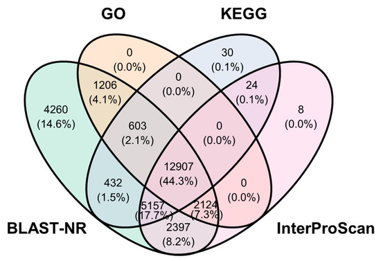 - Haas, B.J.; Papanicolaou, A.; Yassour, M.; Grabherr, M.; Blood, P.D.; Bowden, J.; Couger, M.B.; Eccles, D.; Li, B.; Lieber, M.; et al. De novo transcript sequence reconstruction from RNA-seq using the Trinity platform for reference generation and analysis. Nat. Protoc. 2013, 8, 1494–1512. [Google Scholar] [CrossRef] [PubMed]