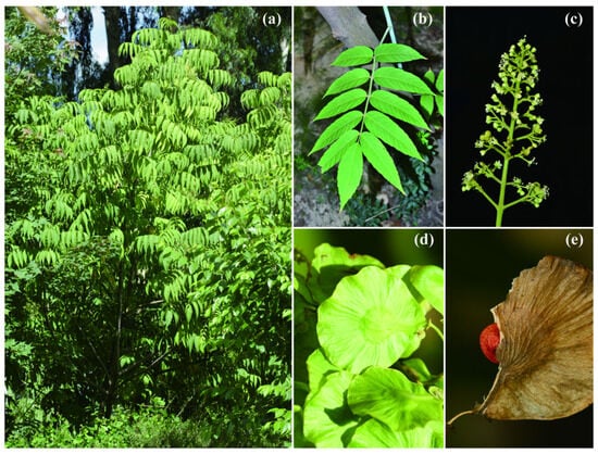 - Rivers, M.C.; Barstow, M.; Crowley, D. Dipteronia dyeriana. The IUCN Red List of Threatened Species 2017, 2017, e.T32340A2815531. [Google Scholar] [CrossRef]