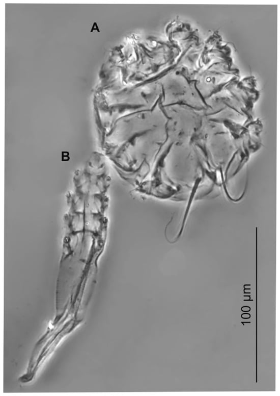 - Hirst, S. On some new or little-known species of Acari, mostly parasitic in habit. Proc. Zool. Soc. Lond. 1921, 1, 357–378. [Google Scholar] [CrossRef]