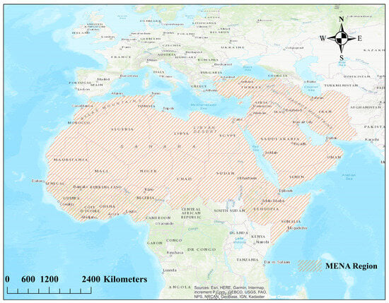 The MENA region is particularly vulnerable to the influence of climate change, since it experiences harsh weather, exceptionally high temperatures, limited groundwater and rainfall, and a lack of agricultural and arable land [32]. According to previous studies, the MENA region near the Mediterranean region is identified as one of the hotspots for climate change [33,34]. Specifically for agricultural and hydrological drought time scales, a study of the characteristics of drought in the Mediterranean under future climate change conditions shows a constantly growing tendency for drought occurrences in the summer months in the Mediterranean region [35].