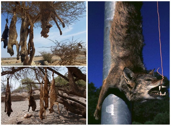 Threats affecting the carnivores of Saudi Arabia were studied and highlighted, including persecution, illegal trade, killing and poisoning, and habitat destruction [30,31,32,33,34].