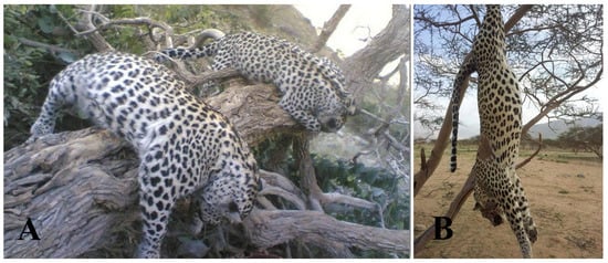 - Jacobson, A.P.; Gerngross, P.; Lemeris, J.R., Jr.; Schoonover, R.F.; Anco, C.; Breitenmoser-Würsten, C.; Durant, S.M.; Farhadinia, M.S.; Henschel, P.; Kamler, J.F.; et al. Leopard (Panthera pardus) status, distribution, and the research efforts across its range. PeerJ 2016, 4, e1974. [Google Scholar] [CrossRef] [PubMed]