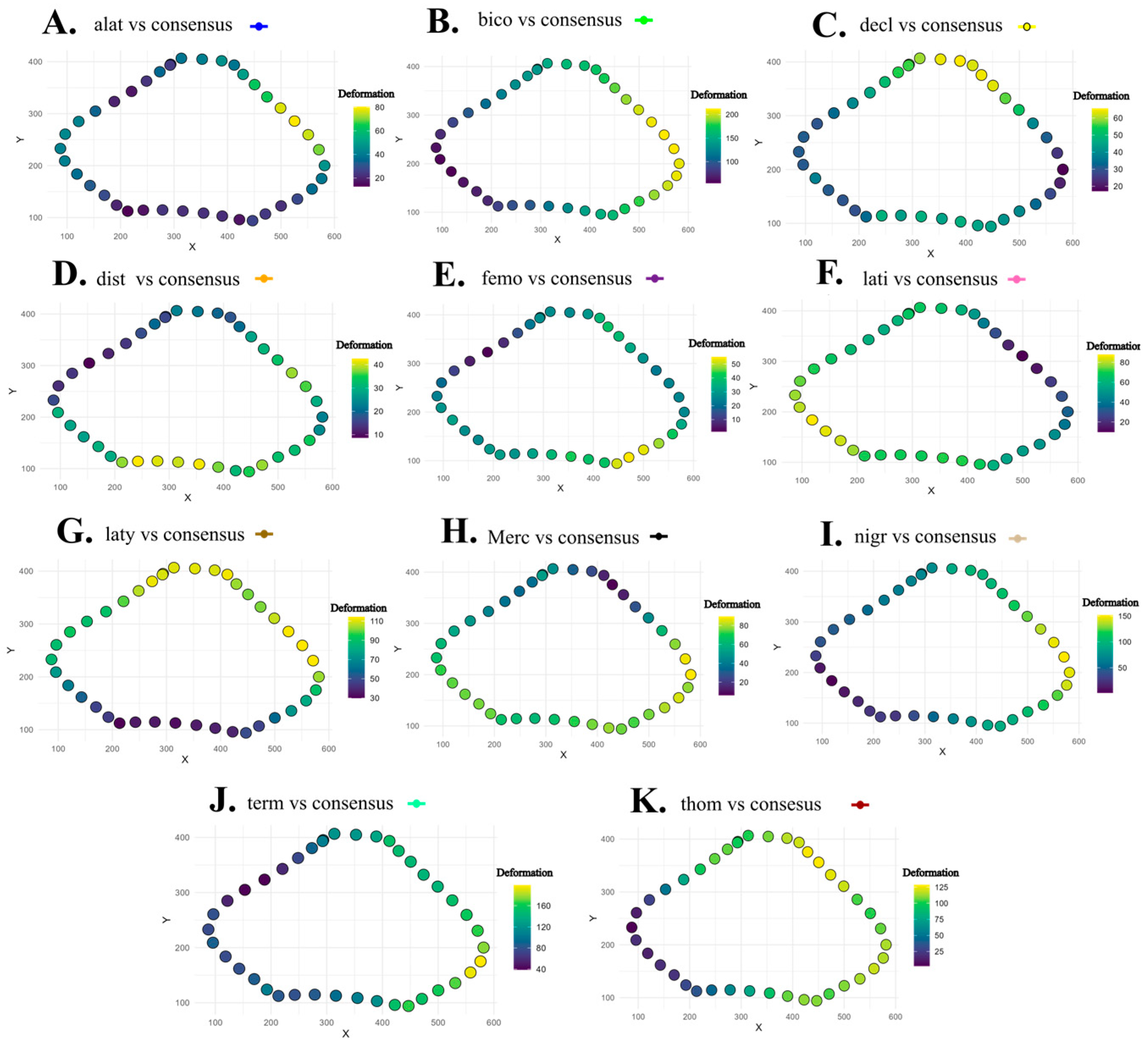 - Rohlf, F.J.; Slice, D. Extensions of the Procustes methods for the optimal superimposition of landmarks. Syst. Zool. 1990, 39, 40–59. [Google Scholar] [CrossRef]