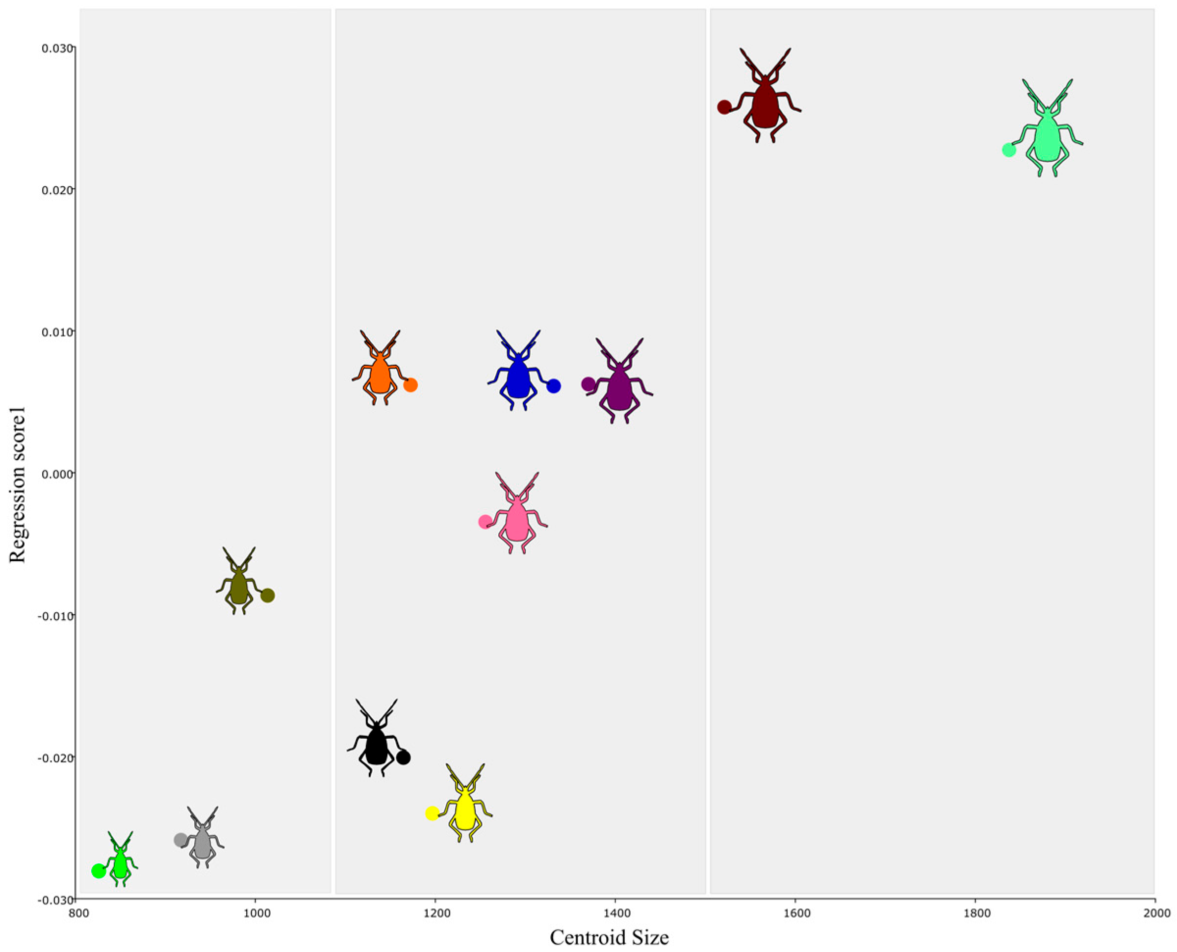 - Lemic, D.; Benítez, H.A.; Bažok, R. Intercontinental effect on sexual shape dimorphism and allometric relationships in the beetle pest Diabrotica virgifera virgifera LeConte (Coleoptera: Chrysomelidae). Zool. Anz.-A J. Comp. Zool. 2014, 253, 203–206. [Google Scholar] [CrossRef]