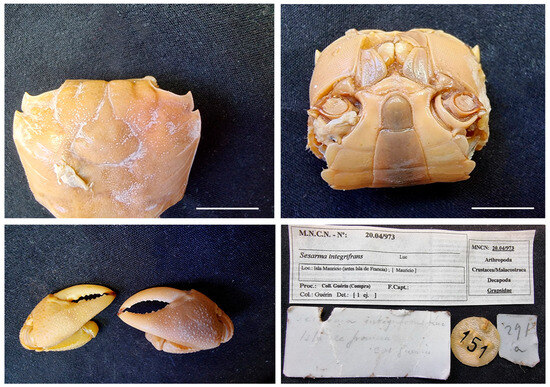 Goniopsis pelii from Equatorial Guinea, MNCN 20.04/01020. Scale bars: 1 cm.