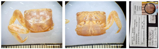 This type of collaboration between specialists and museums provides the necessary resources for revising and updating the classifications of families, genera, and species, which is crucial for keeping taxonomic knowledge updated. Additionally, the use of new molecular techniques, such as DNA barcoding, allow us to conduct more detailed studies on specific taxa. This is the first application of the extraction protocol developed by Ruane & Austin [32] in Decapods, because previously it was used mainly in Vertebrata, especially Reptiles and Fishes [75,76]. The successful results with crab specimens preserved until 200 years ago are promising and open an interesting opportunity for molecular studies of decapod specimens deposited in museums and collections that previously where are not attempted because they were preserved many years ago.