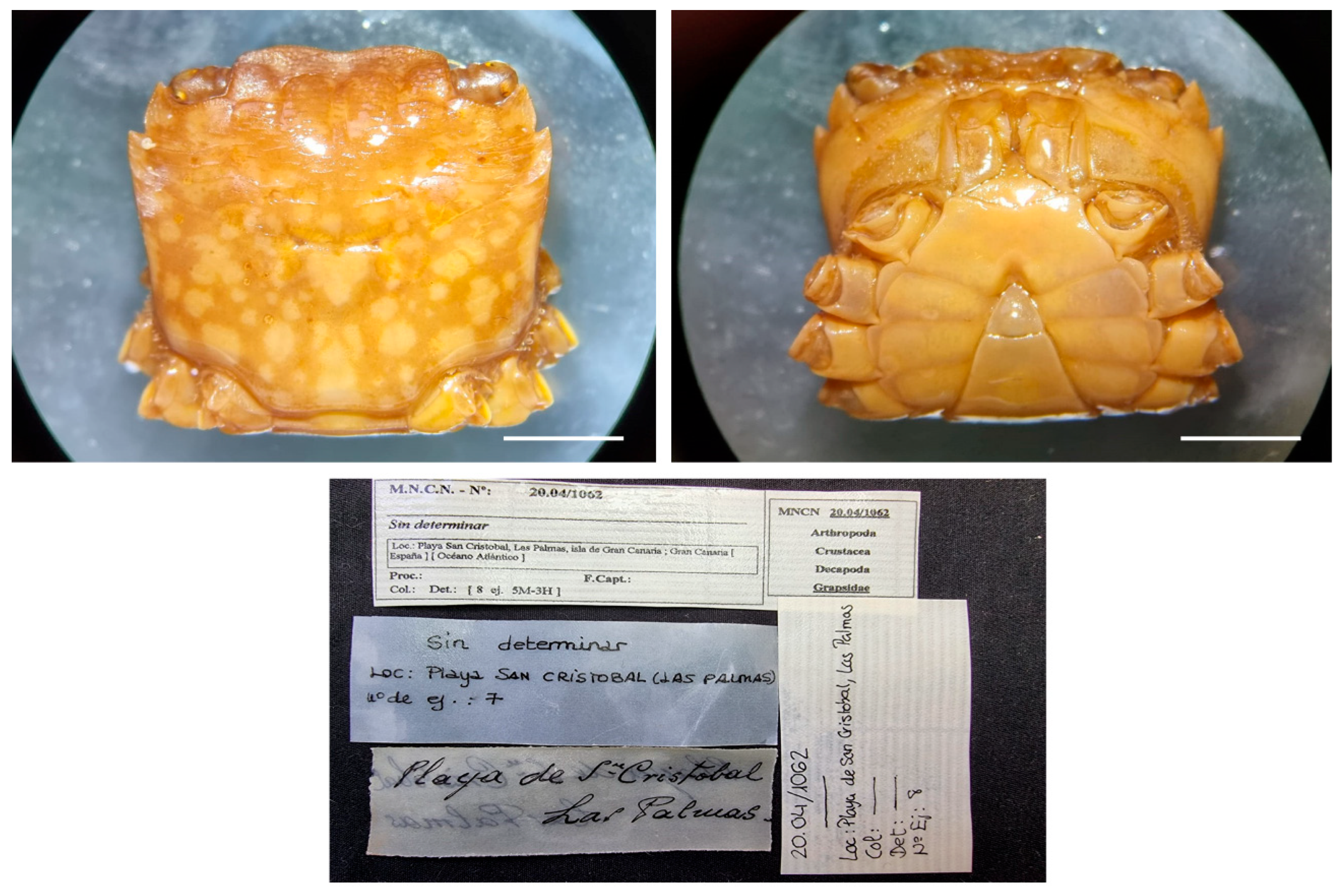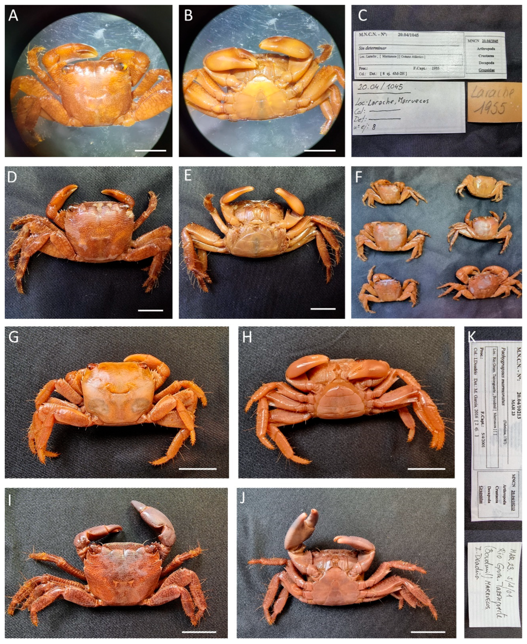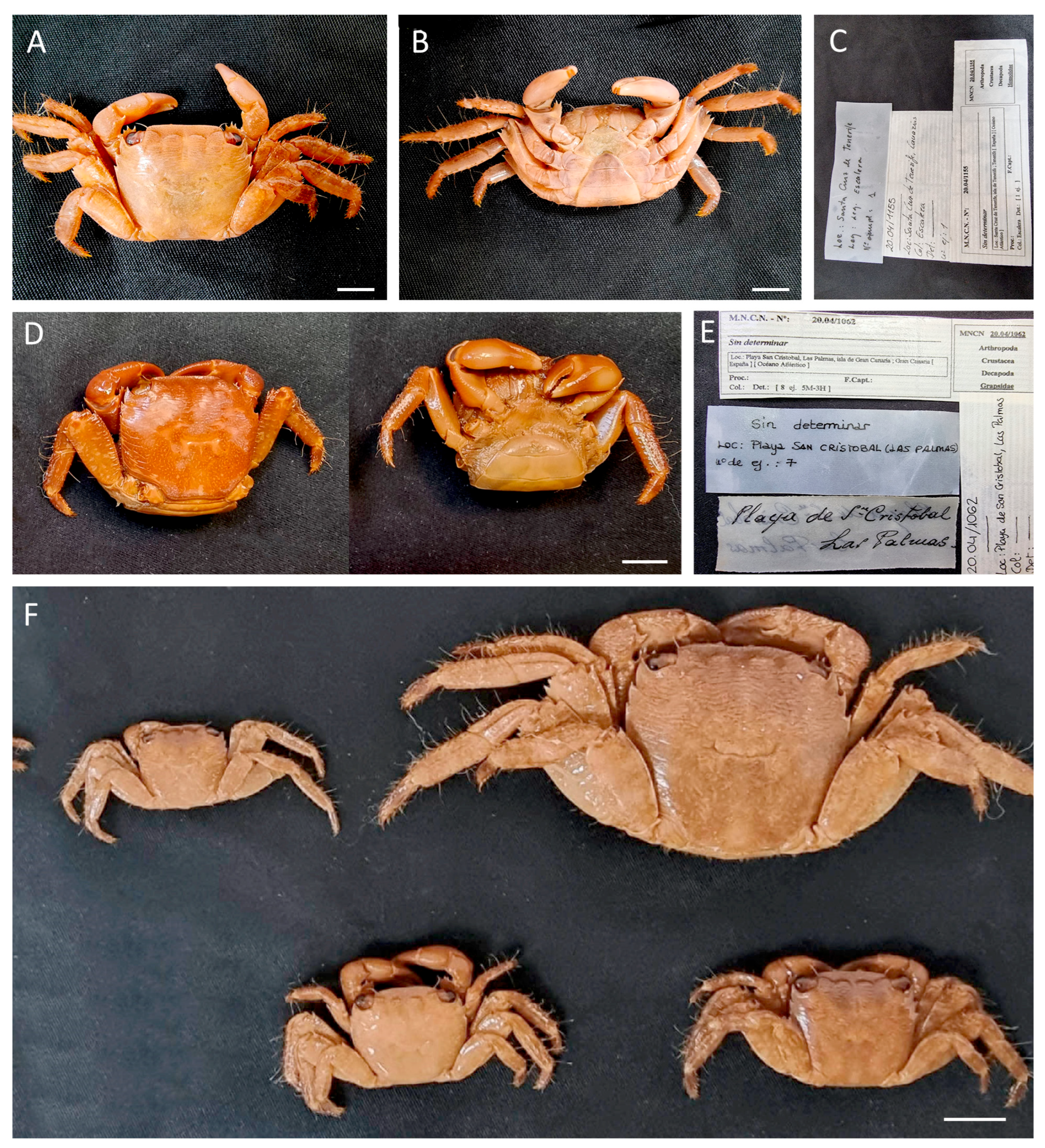 Remarks. Specimens MNCN 20.04/00995 were previously identified as G. tenuicrustatus and MNCN 20.04/01059 and MNCN 20.04/01074 as G. grapsus.