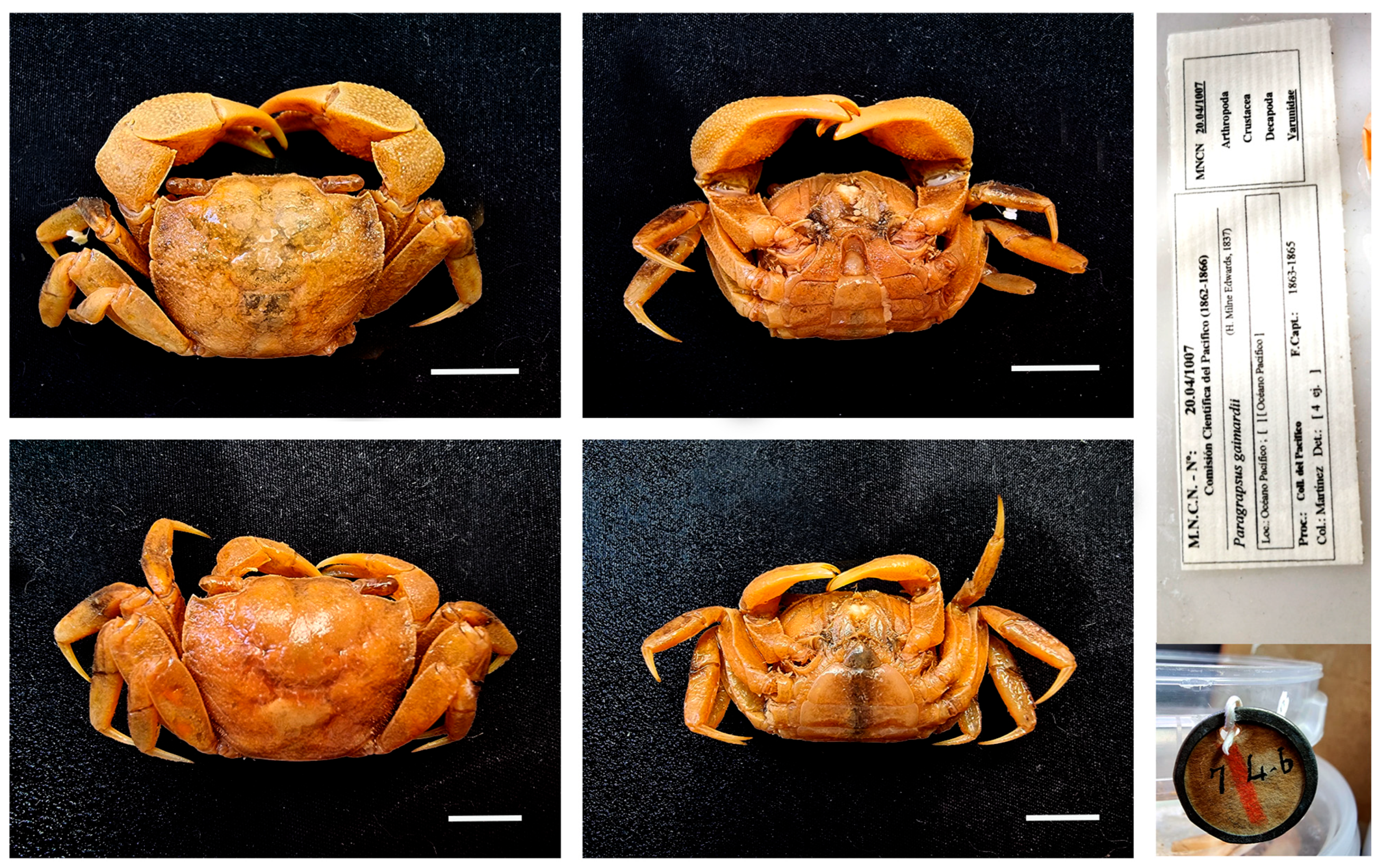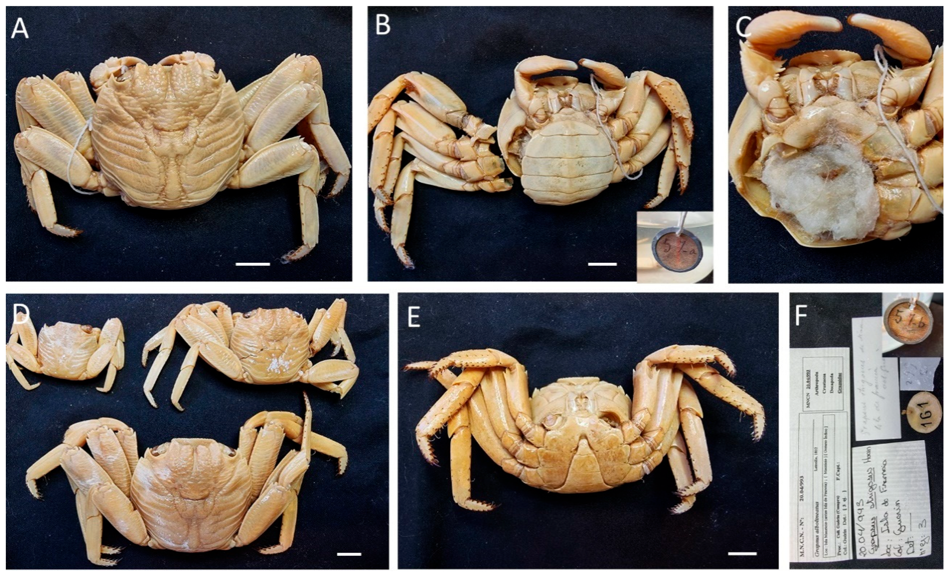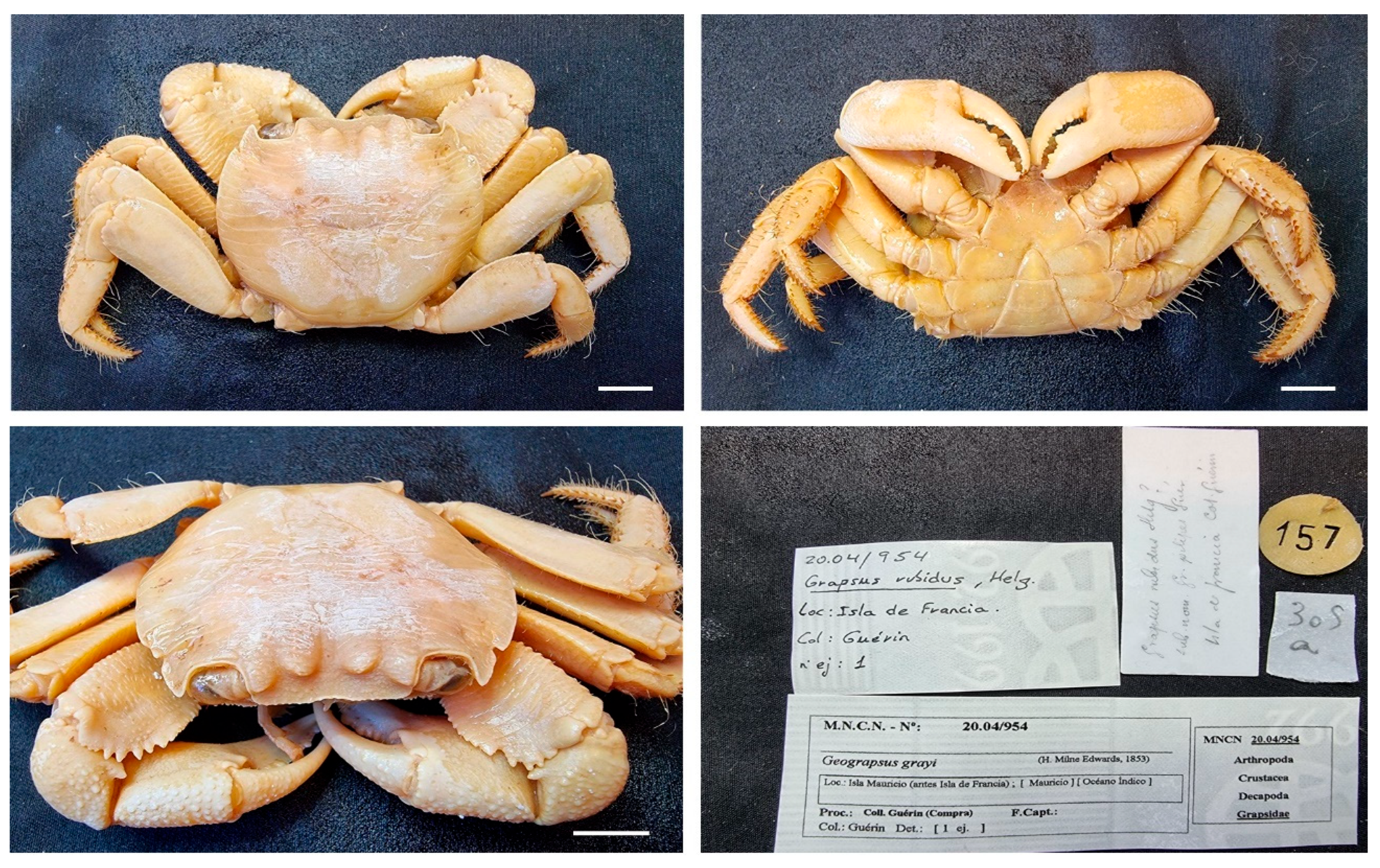 Remarks. Specimens MNCN 20.04/00995 were previously identified as G. tenuicrustatus and MNCN 20.04/01059 and MNCN 20.04/01074 as G. grapsus.