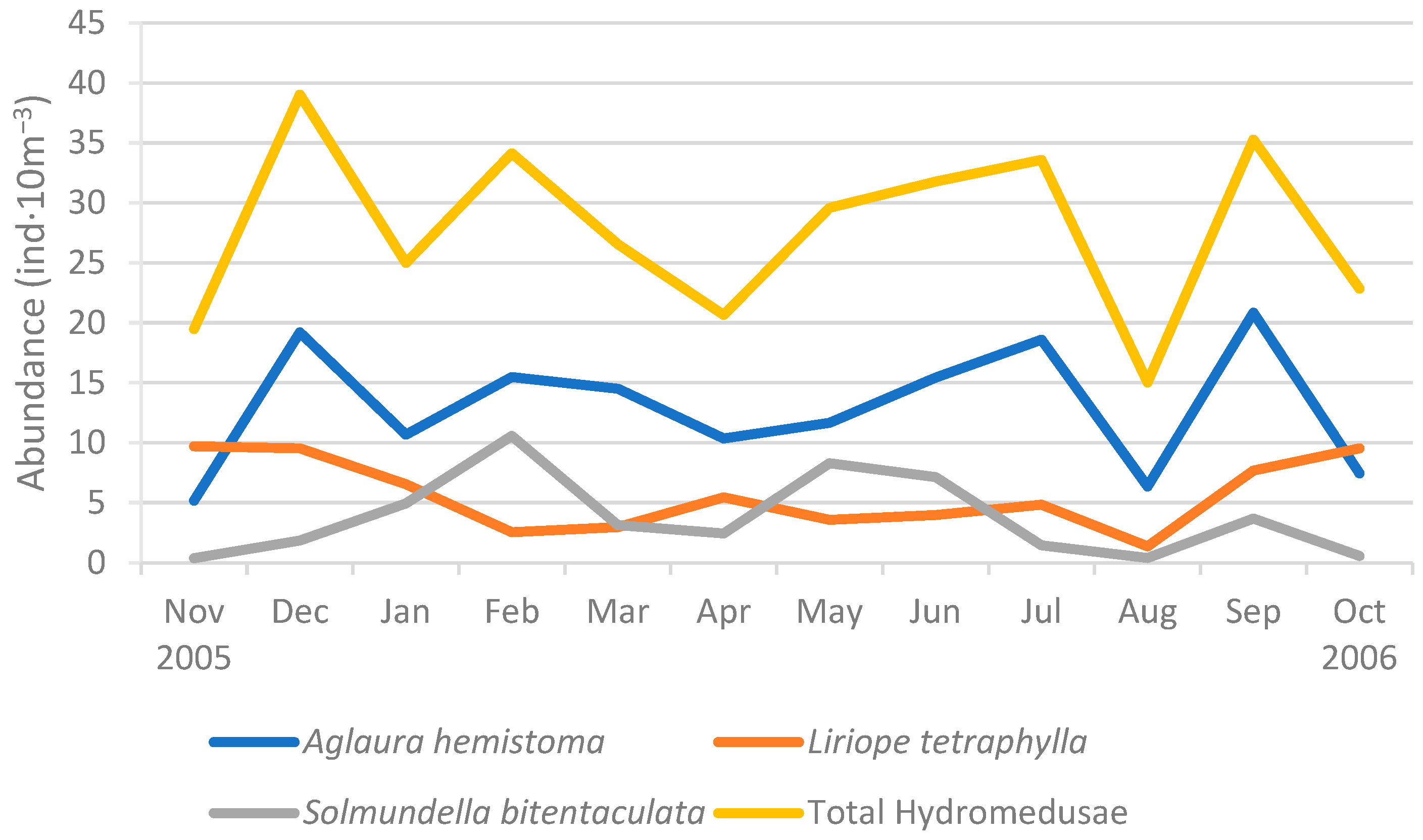 3.3. Hydromedusa Temporal Distribution (November 2005–October 2006)