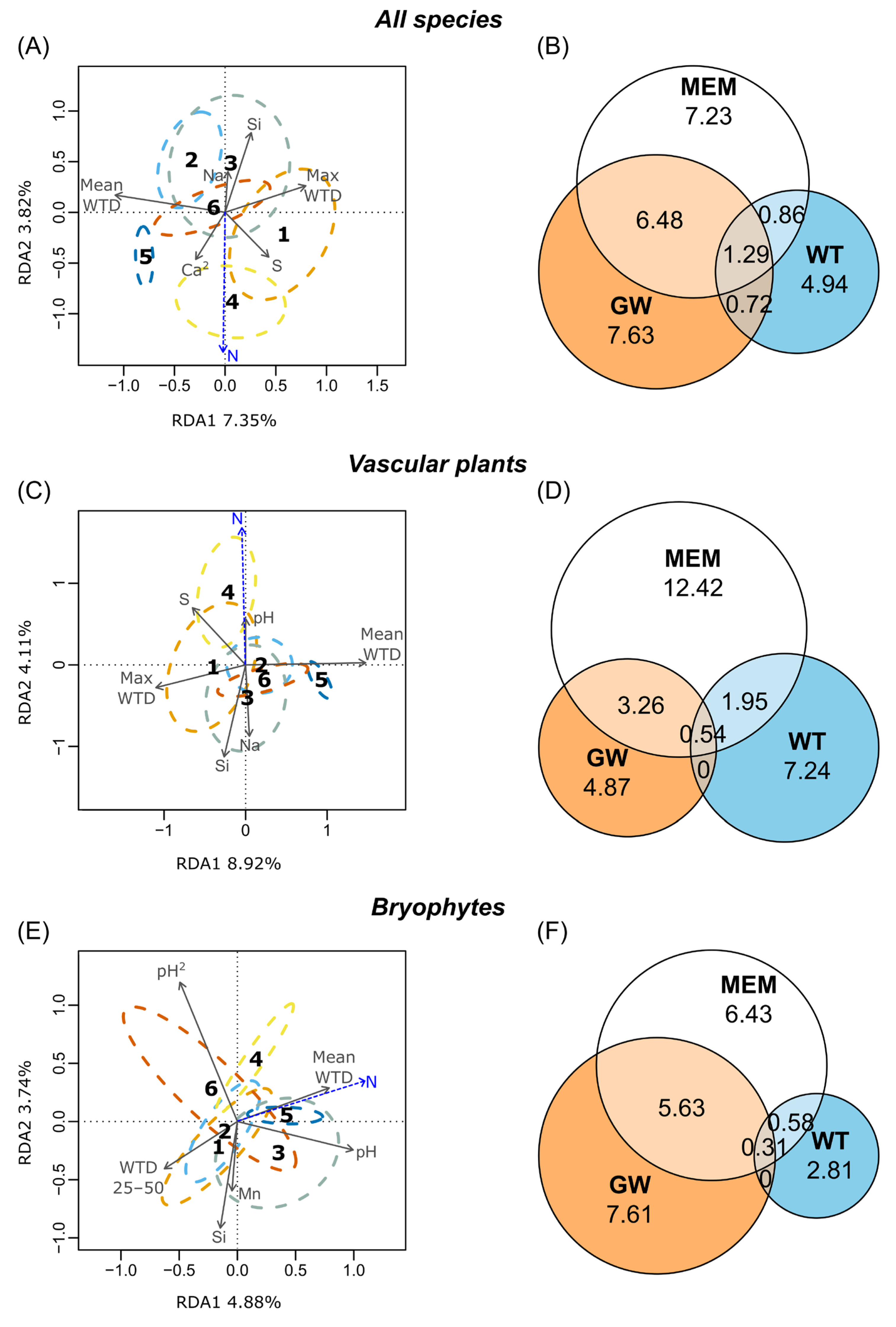 4.3. Comparison of Ecological Drivers of Vascular Plants and Bryophytes