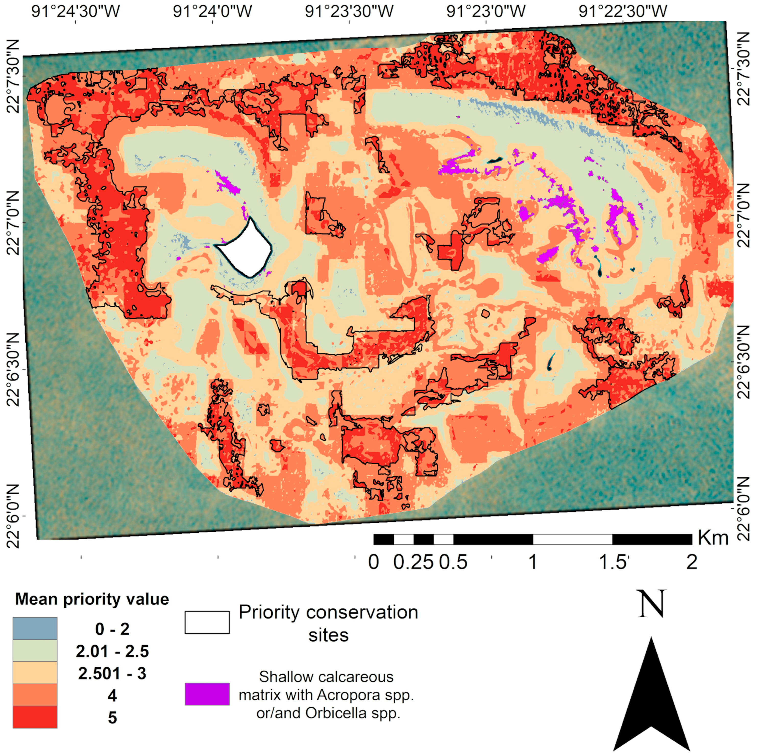 - Pittman, S.J.; Poti, M.; Jeffrey, C.F.G.; Kracker, L.M.; Mabrouk, A. Decision Support Framework for the Prioritization of Coral Reefs in the U.S. Virgin Islands. Use Spat. Ecol. Conserv. 2018, 47, 26–34. [Google Scholar] [CrossRef]