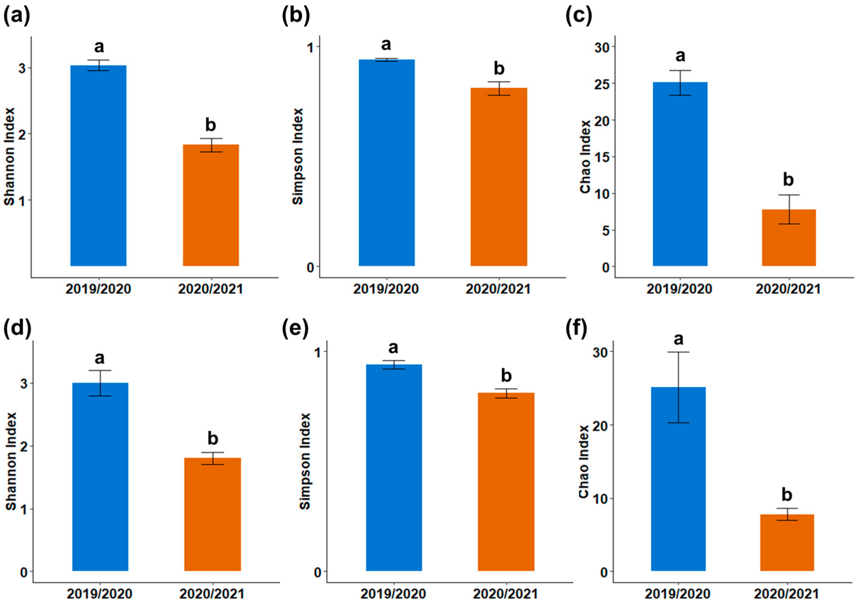 | Season | Treatment | Shannon | Simpson | Chao | ||||