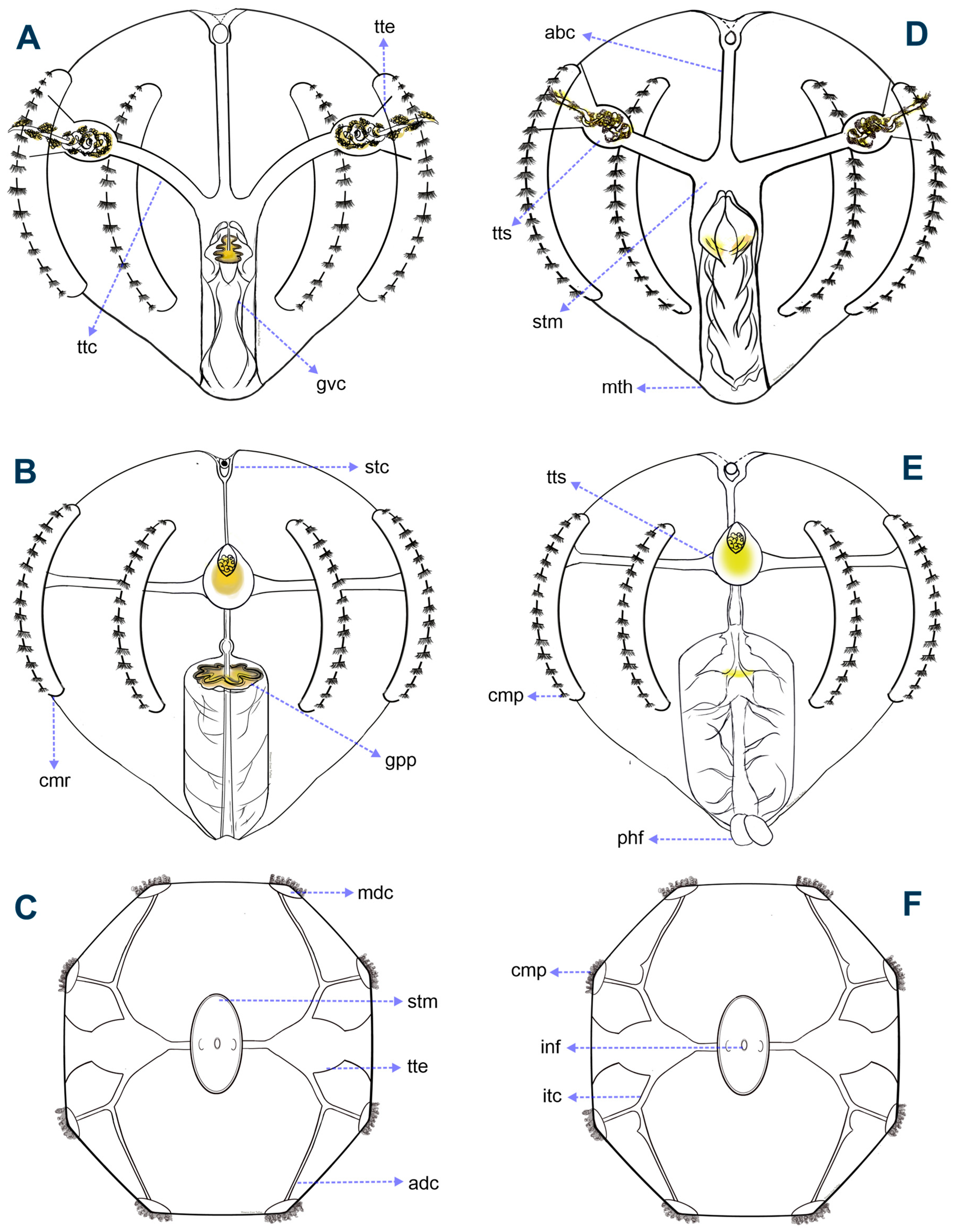 - Stomach tissue margin (STM). Observable in the tentacular plane. (0) Absent or (1) present (Figure 2).