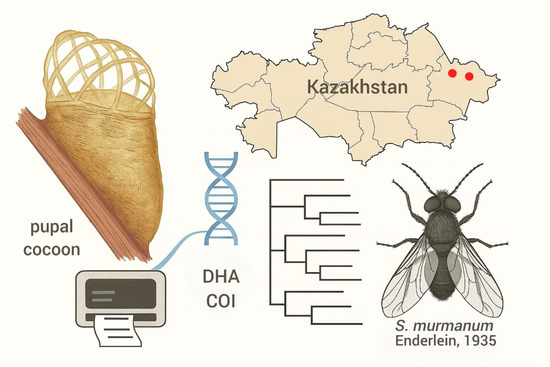 Orazbekova, A.A.; Akhmetov, K.K.; Petrozhitskaya, L.V.; Kabyltayeva, A.Z.; Khalykova, M.Z.; Burkitbaeva, U.D.; Mazhenova, L.M.; Kiyan, V. New Records of Simulium murmanum Enderlein, 1935 and Simulium reptans (Linnaeus, 1758) (Diptera: Simuliidae) in North-Eastern Kazakhstan: Bionomics and Habitat Range. Diversity 2025, 17, 718. https://doi.org/10.3390/d17100718