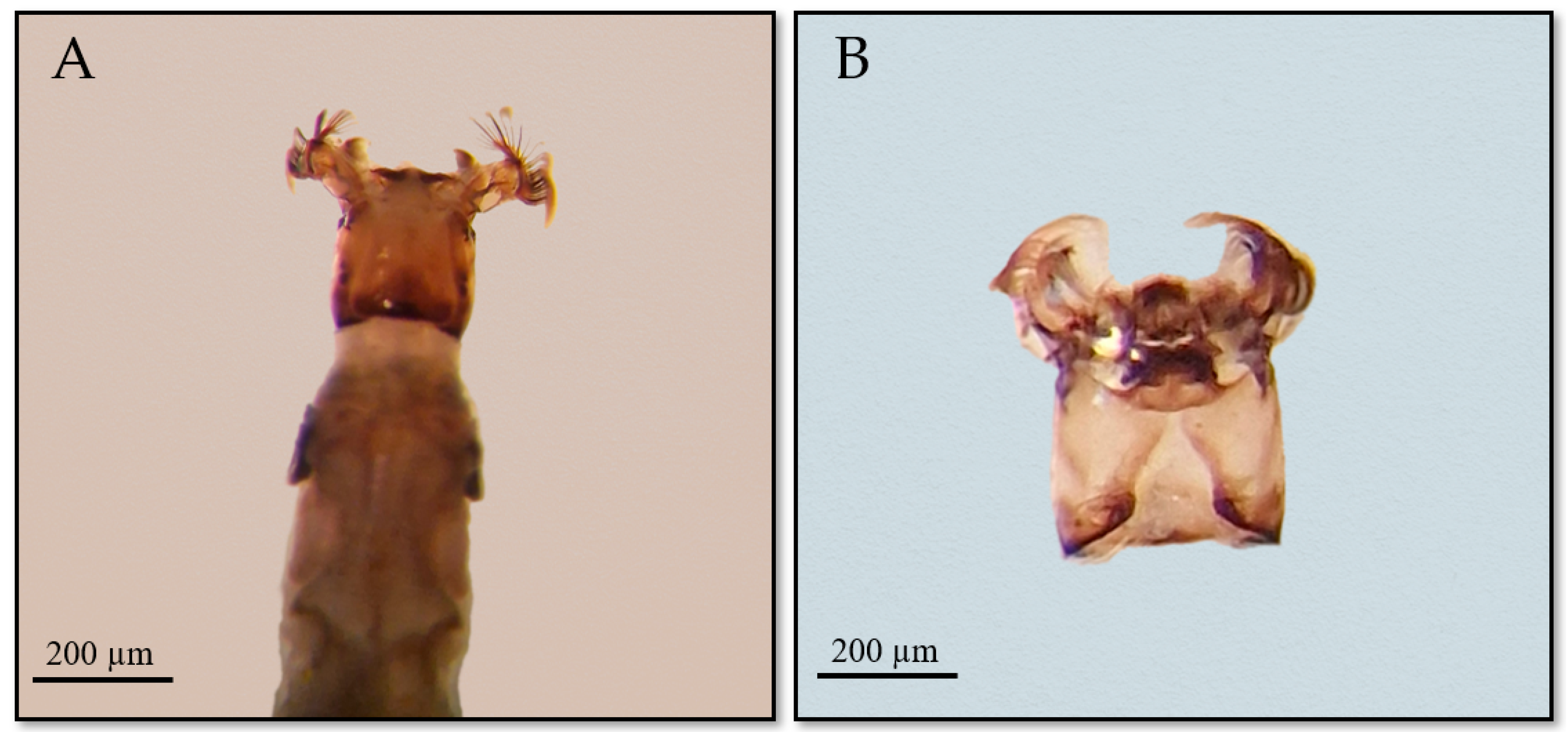 - Rubtsov, I.A. The Methods of the Study of Black Flies; USSR Academy of Sciences: Leningrad, Russia, 1956; 56p. (In Russian) [Google Scholar]