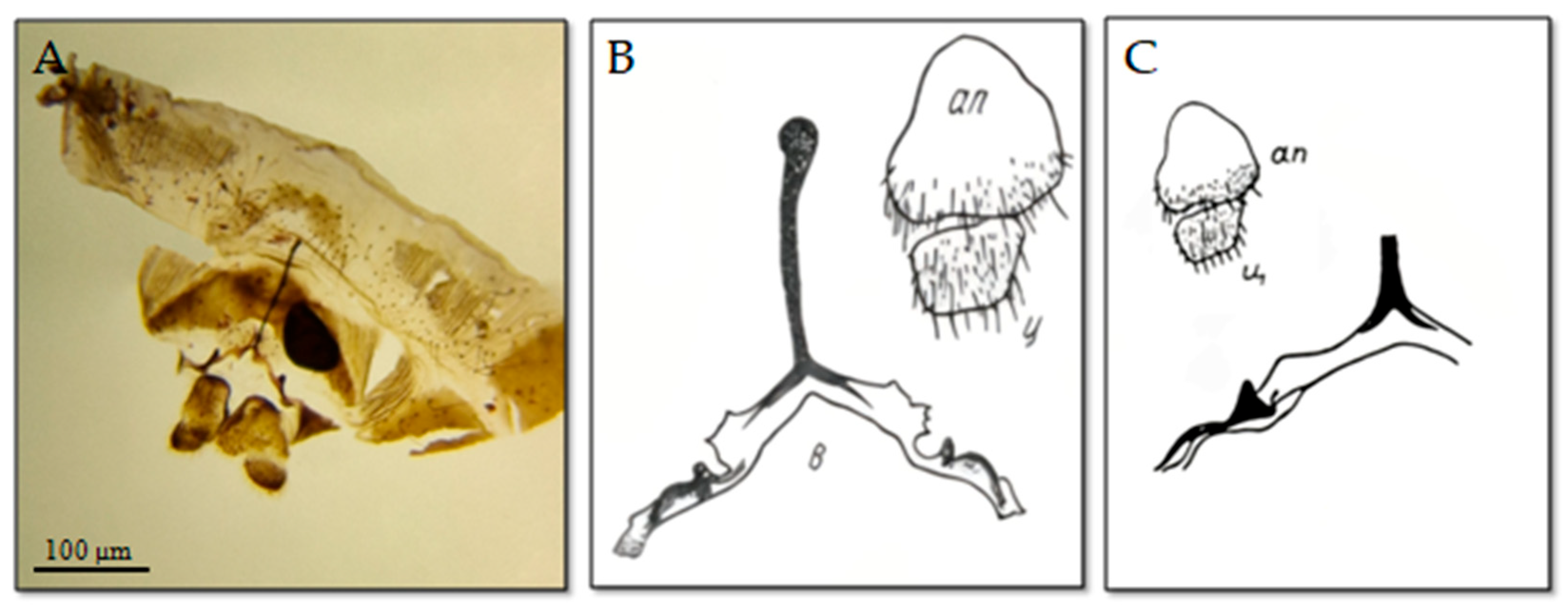 - Yankovsky, A.V. Identification of the Blackflies (Diptera: Simuliidae) from Russia and Its Adjoining Area; Zoological Institute of Russian Academy of Sciences: St. Petersburg, Russia, 2002; 569p. (In Russian) [Google Scholar]