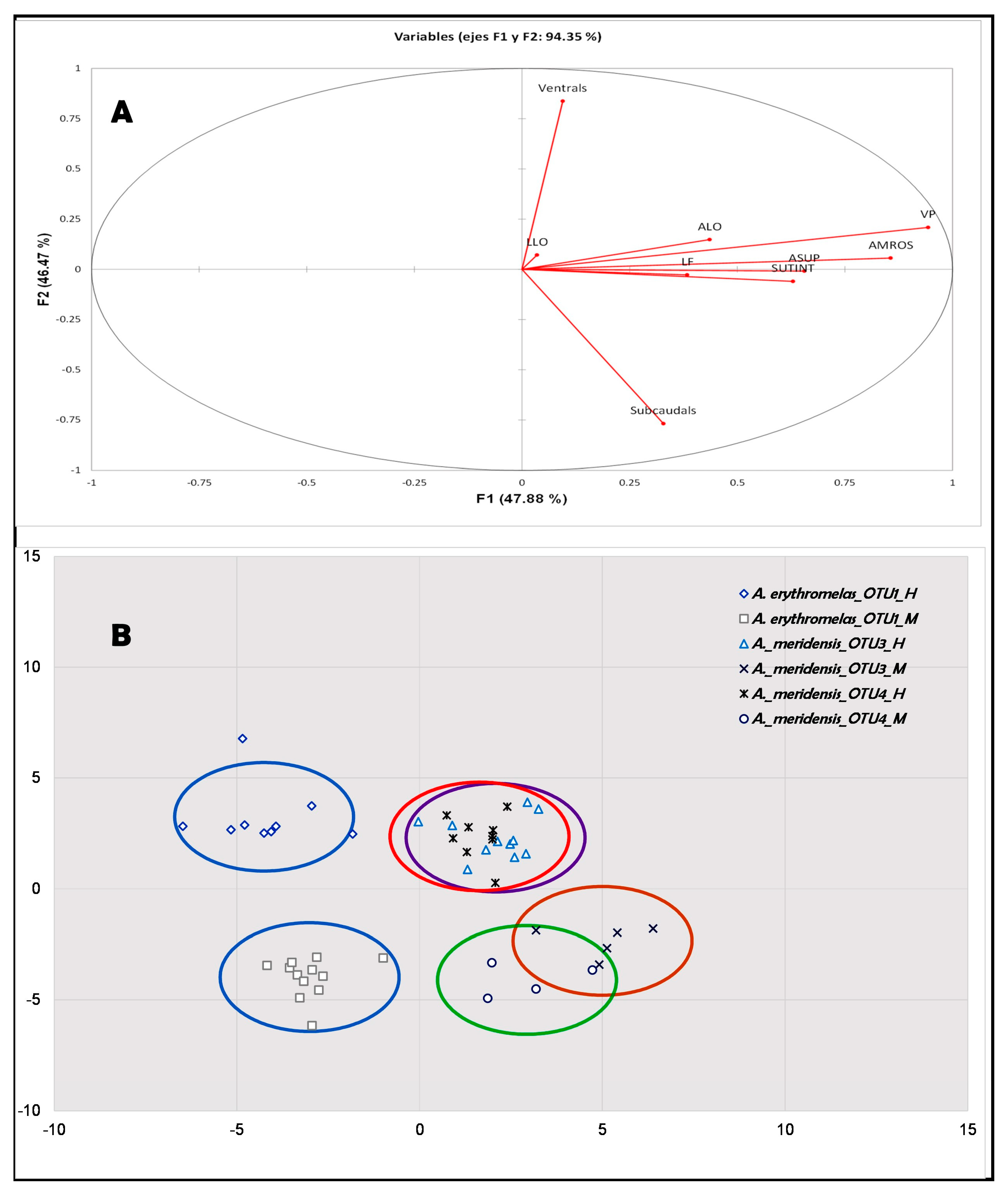 - Esqueda, L.F.; Rojas-Runjaic, F.J.M.; Correa, C.; Ortiz, J.C.; Guerrero, P.; Jiménez, J.D.; Bazó, S.; Moreno-Pérez, A.; Aguilar, M.; Urra, F. Morphological and molecular analyses of mountain centipede snake Serpentes: Tantilla reveal a new species from Venezuelan Andes. Acad. Biol. 2025, 3. [Google Scholar] [CrossRef]