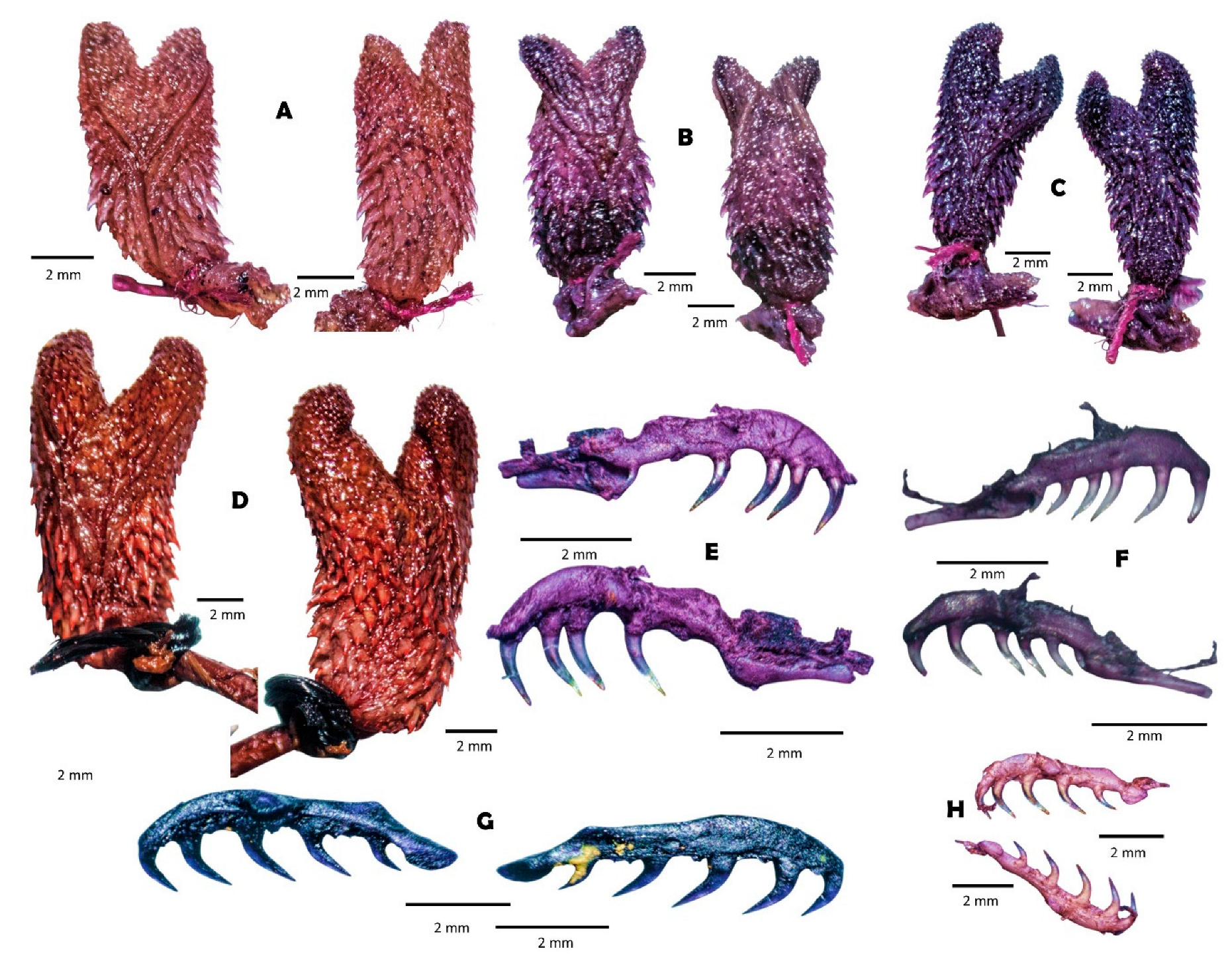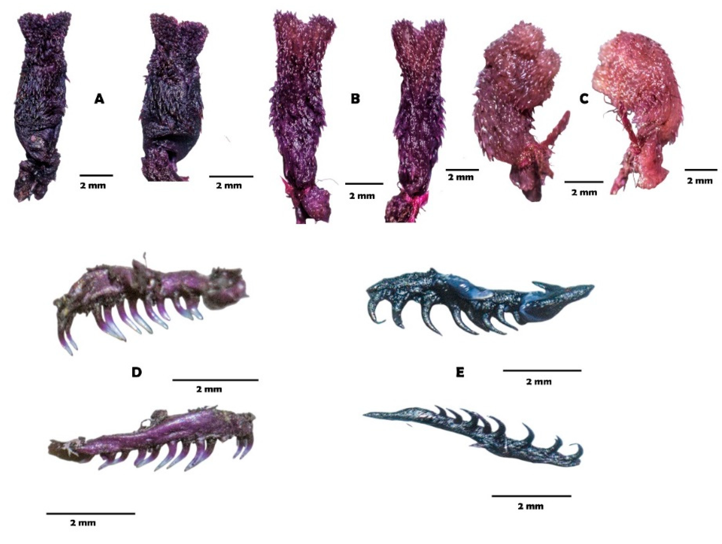 | Hemipenis | Semicapitate, semicalyculate, moderate bilobed or bilobate, subcylindrical lobes and rounded apex | Semicapitate, semicalyculate, slightly bilobed, clavate lobes and rounded apex | Semicapitate, semicalyculate, moderate bilobed, cylindrical lobes and plane apex | Semicapitate, semicalyculate, moderate bilobed, cylindrical lobes and plane apex |