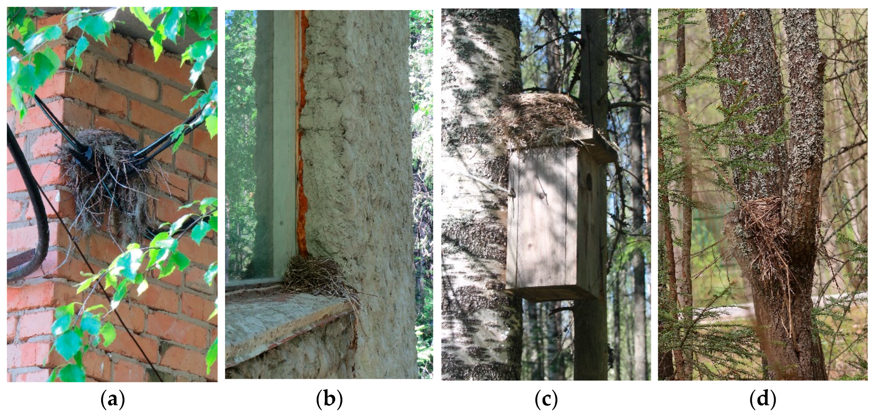 Figure 1). Additionally, nests were collected in forest plantations along fields and meadows, in willow groves with mixed grasses, in the Ezhvinsky district of the city of Syktyvkar.