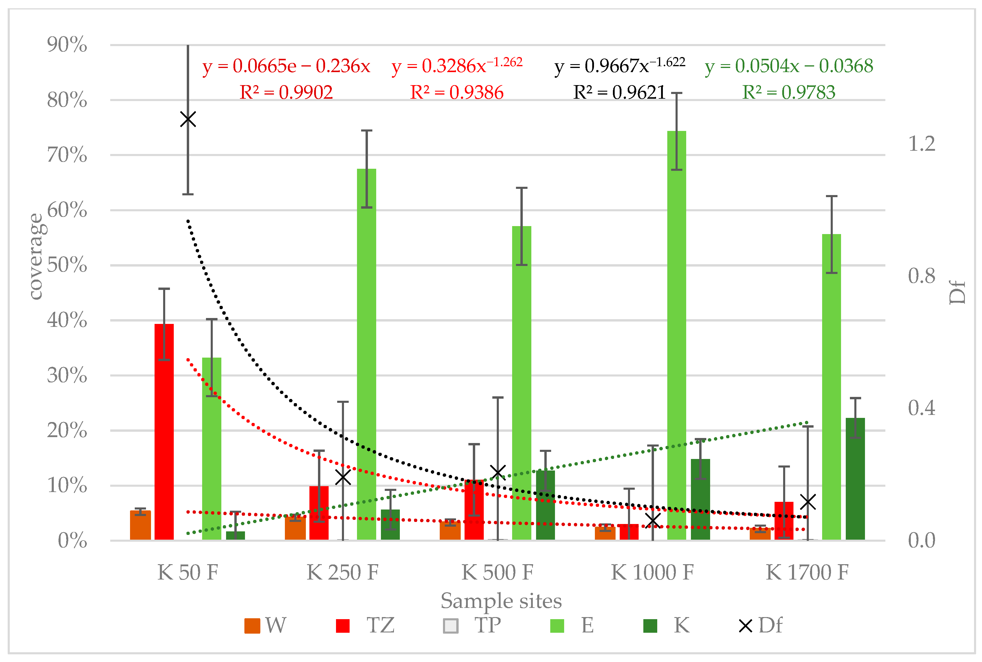 - Kelemen, A.; Török, P.; Valkó, O.; Deák, B.; Tóth, K.; Tóthmérész, B. Both Facilitation and Limiting Similarity Shape the Species Coexistence in Dry Alkali Grasslands. Ecol. Complex. 2015, 21, 34–38. [Google Scholar] [CrossRef]