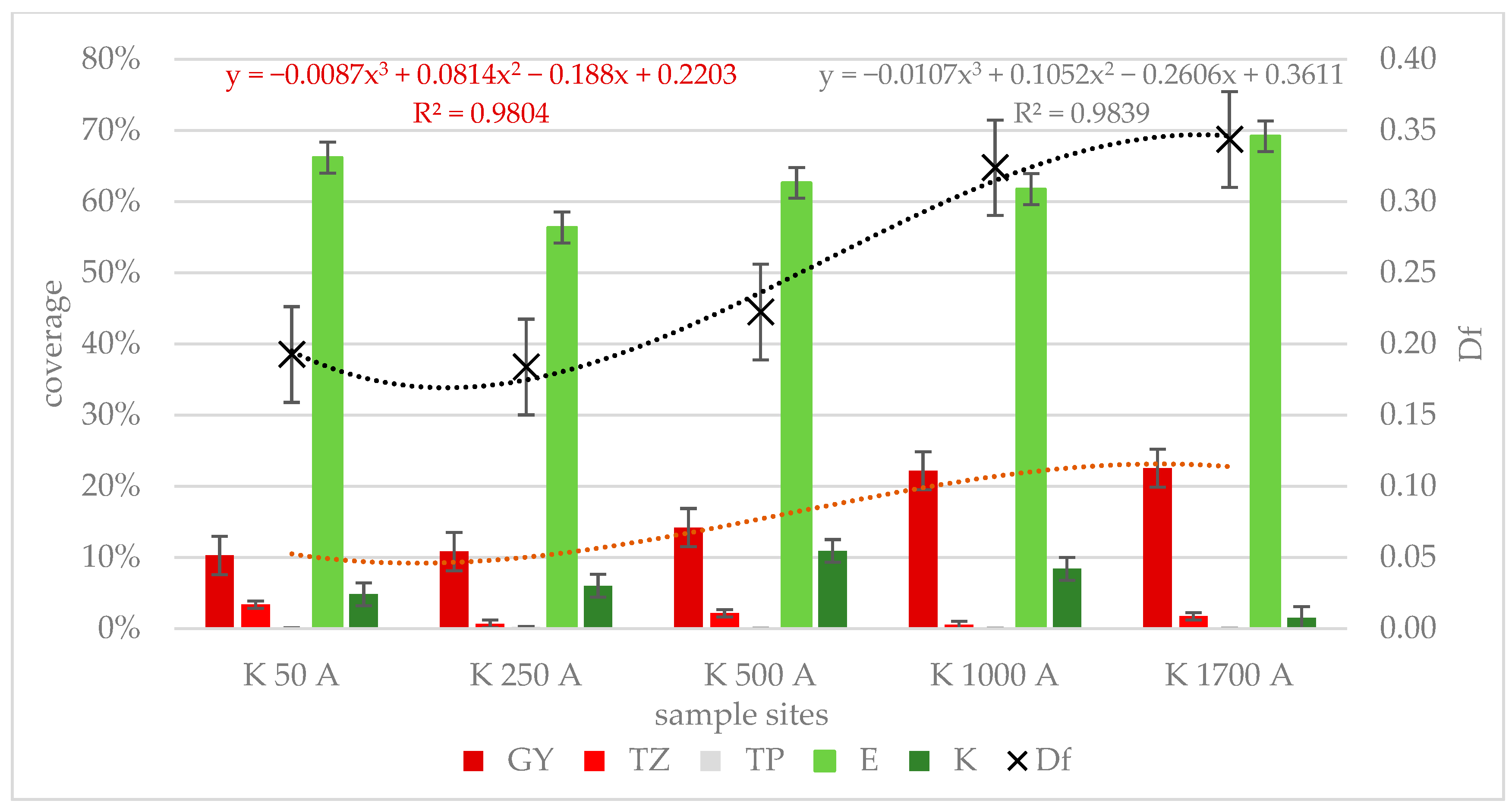 - Török, P.; Penksza, K.; Tóth, E.; Kelemen, A.; Sonkoly, J.; Tóthmérész, B. Vegetation Type and Grazing Intensity Jointly Shape Grazing Effects on Grassland Biodiversity. Ecol. Evol. 2018, 8, 10326–10335. [Google Scholar] [CrossRef]