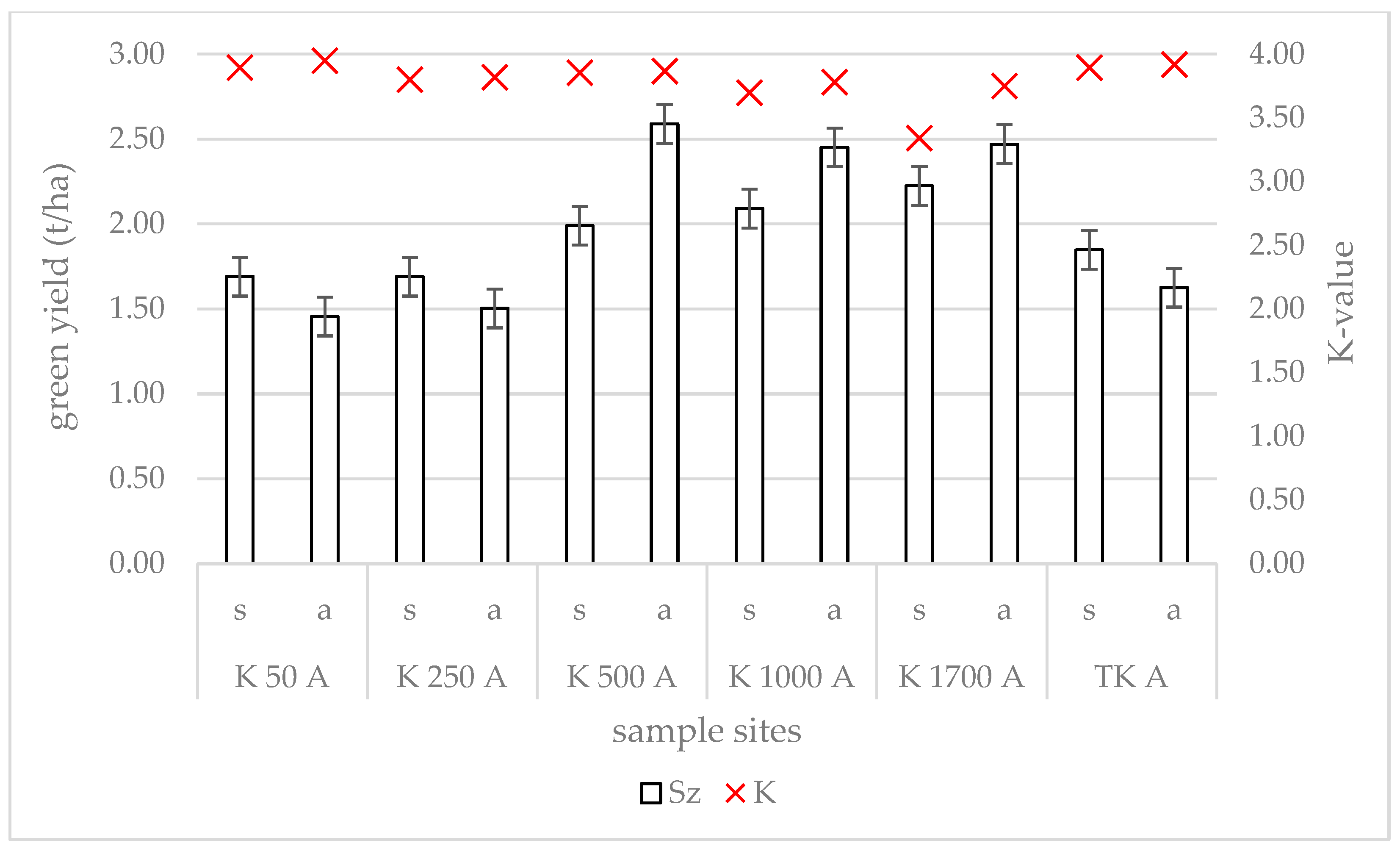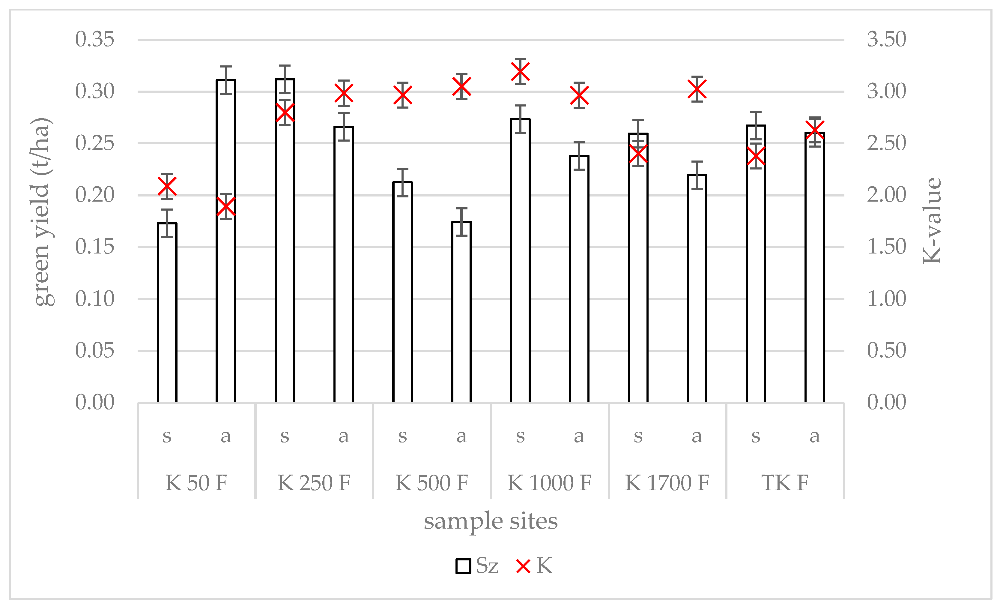 - Balázs, F. A gyepek termésbecslése növényszociológia alapján. [Estimating grass yields based on plant sociology]. Agrártudomány 1949, 1, 26–35. [Google Scholar]