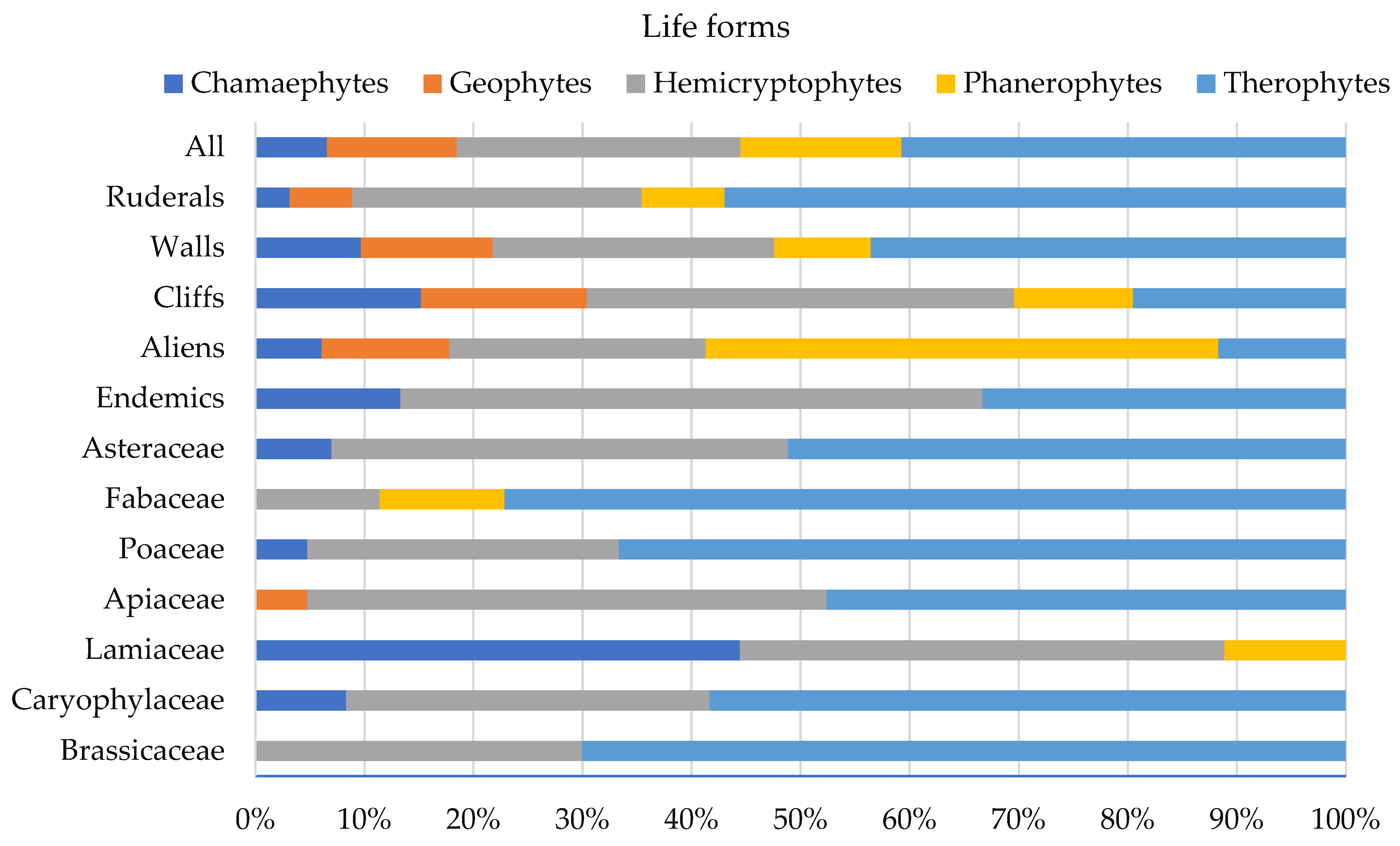- Panitsa, M.; Kontopanou, A. Diversity of Chasmophytes in the Vascular Flora of Greece: Floristic Analysis and Phytogeographical Patterns. Bot. Serb. 2017, 41, 199–211. [Google Scholar] [CrossRef]