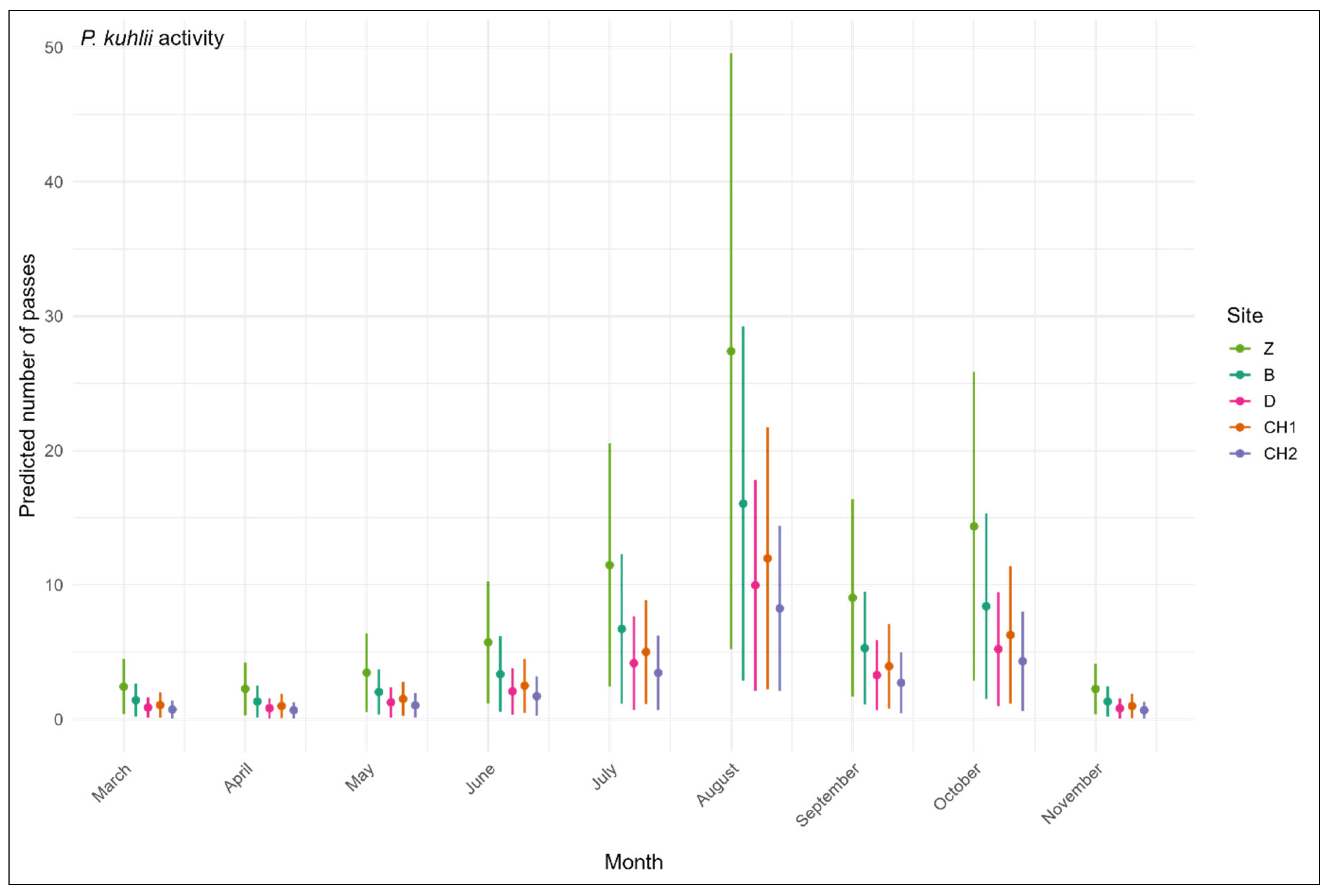 | Models (P. kuhlii) | K | AICc | ΔAICc | AICcWt |