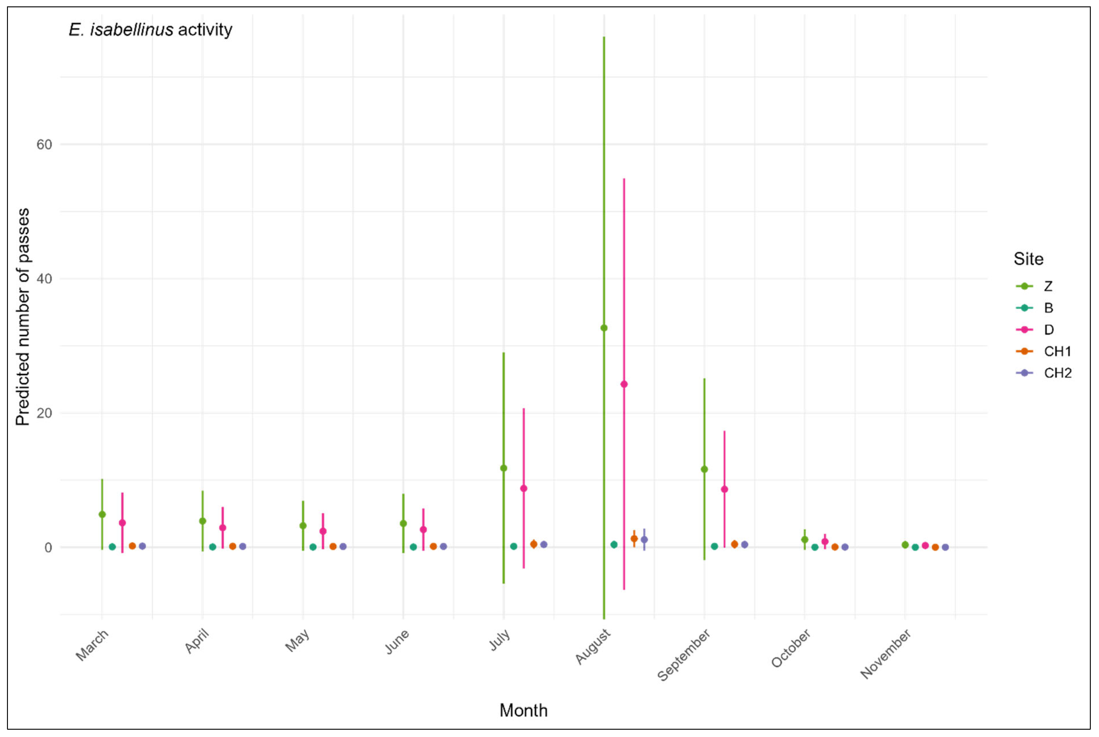 4.3. Spatial and Temporal Activity of P. kuhlii and E. isabellinus