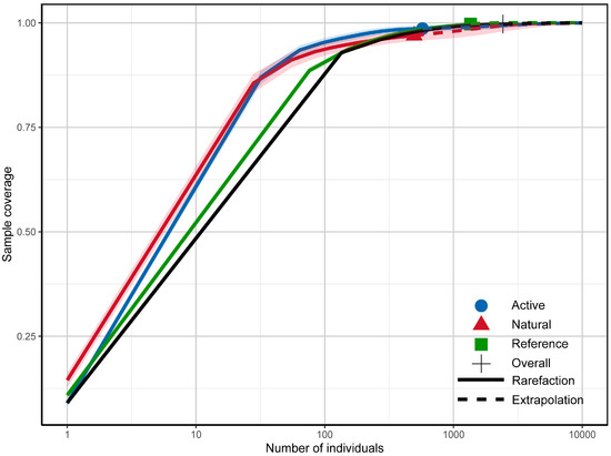 - Hsieh, T.C.; Ma, K.H.; Chao, A.N. iNEXT: An R package for interpolation and extrapolation of species diversity (Hill numbers). Methods Ecol. Evol. 2016, 7, 1451–1456. [Google Scholar] [CrossRef]