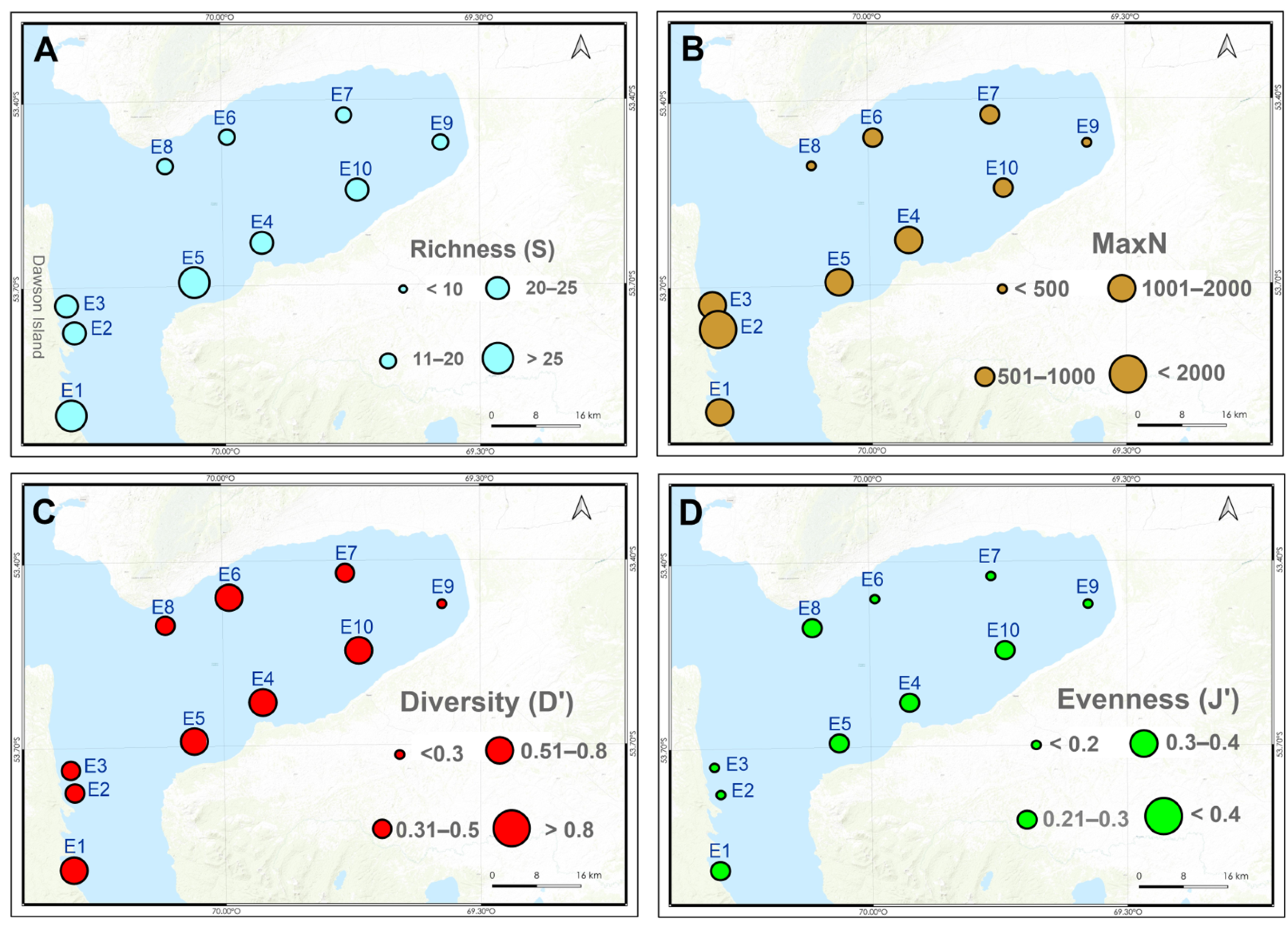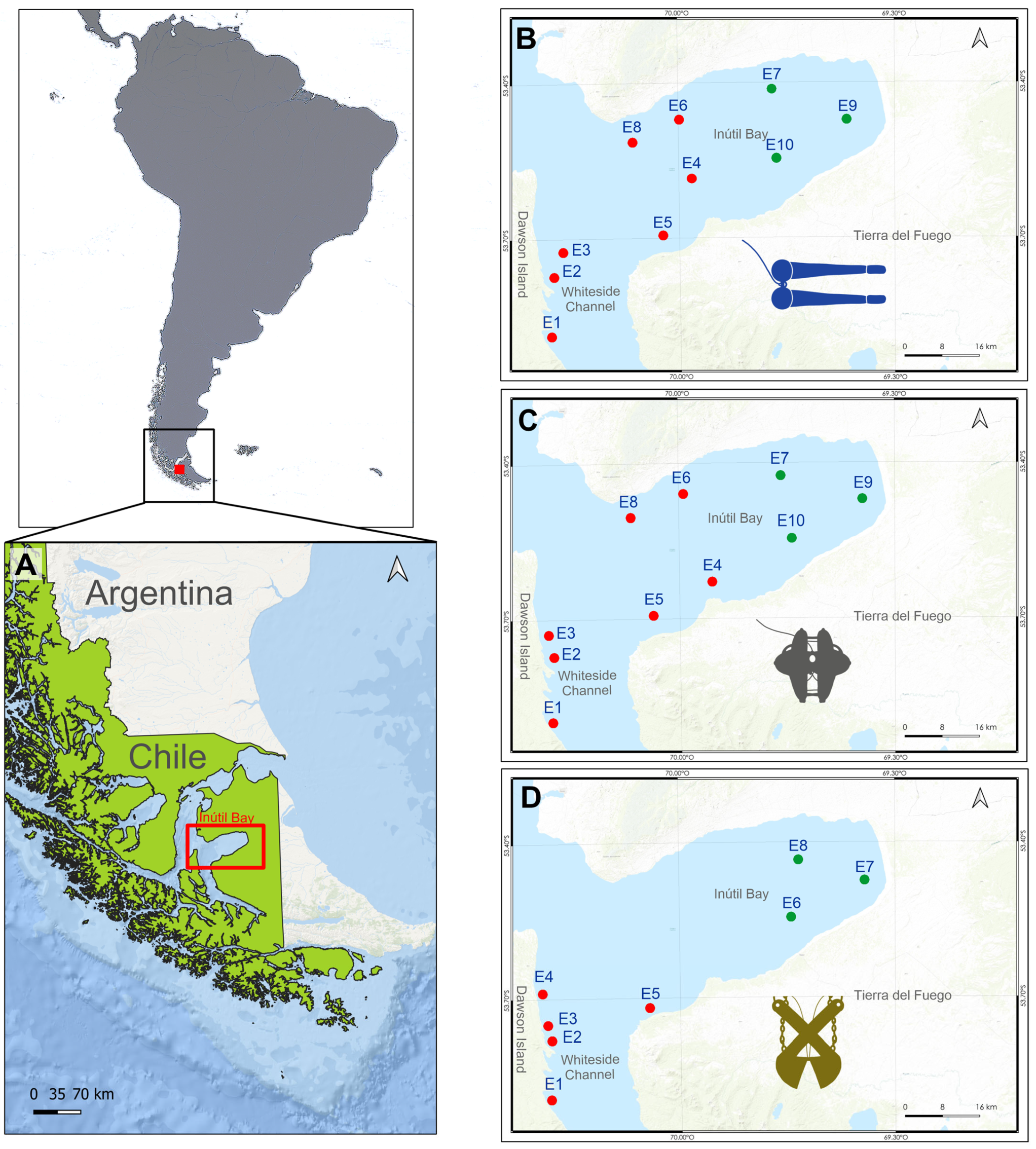 - Gorny, M.; Pereda, R. Descripción de la composición y distribución geográfica de ictiofauna bentónica por medio de imágenes submarinas en las aguas interiores de la Reserva Nacional Katalalixar (Patagonia Central Chilena). An. Inst. Patagon. 2022, 50, 1–14. [Google Scholar] [CrossRef]