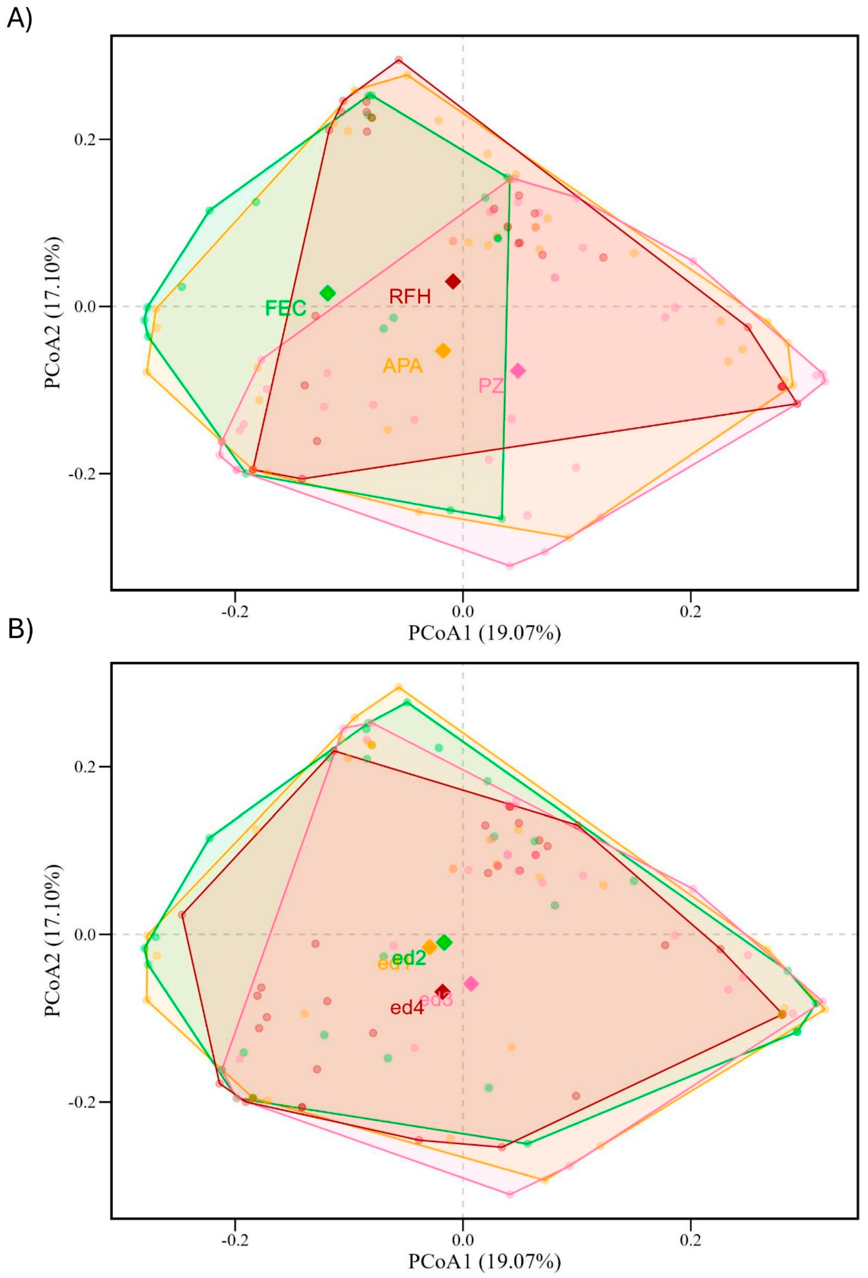 - Oksanen, J.; Simpson, G.; Blanchet, F.; Kindt, R.; Legendre, P.; Minchin, P.; O’Hara, R.; Solymos, P.; Stevens, M.; Szoecs, E.; et al. Vegan: Community Ecology Package, R Package Version 2.7-0; CRAN: Vienna, Austria, 2022.