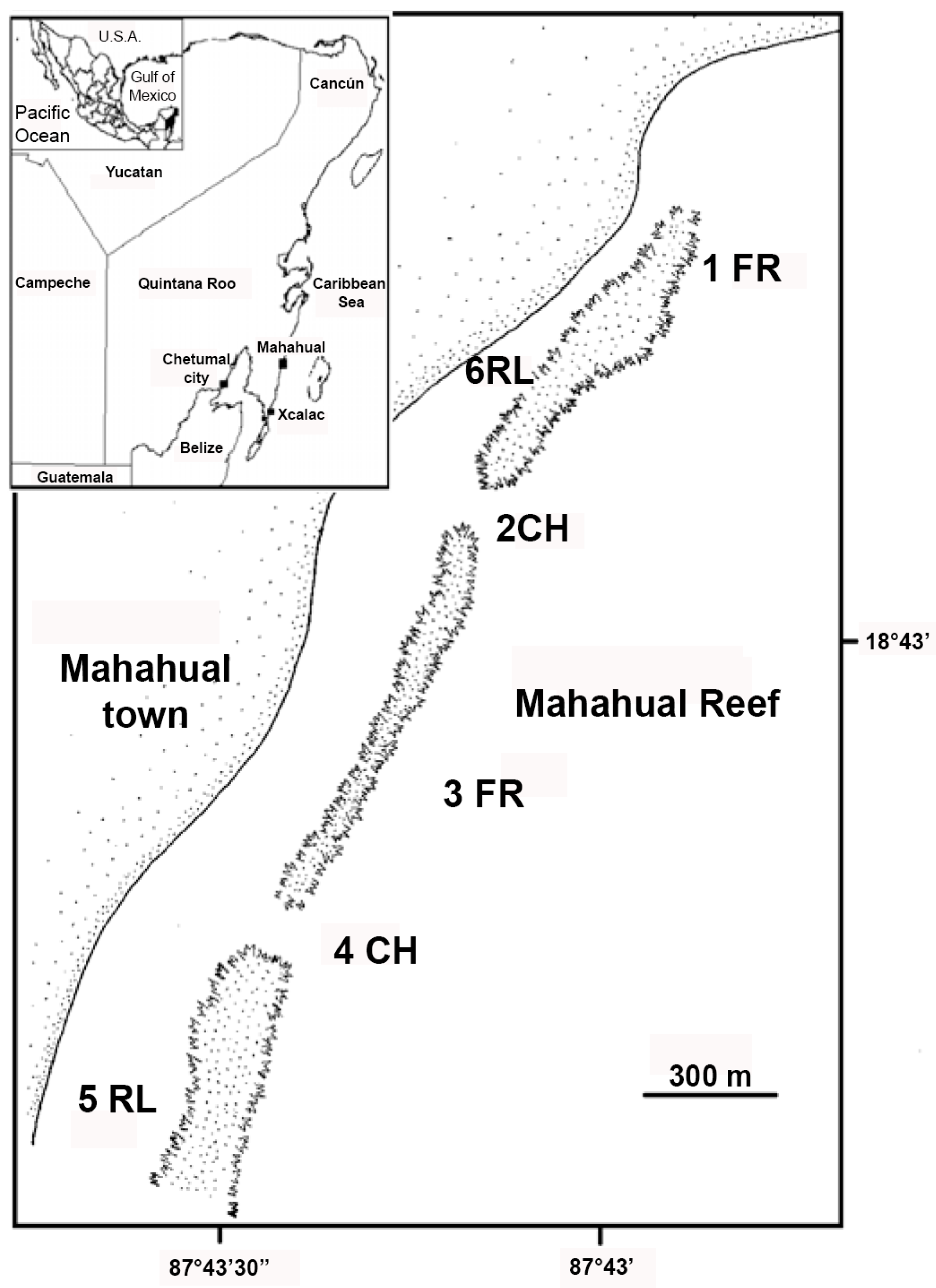 - Spalding, M.D.; Brown, B.E. The Mesoamerican Reef. In Mesophotic Coral Ecosystems; Loya, Y., Puglise, K.A., Bridge, T.C.L., Eds.; Springer: Cham, Switzerland, 2019; pp. 119–132. [Google Scholar]